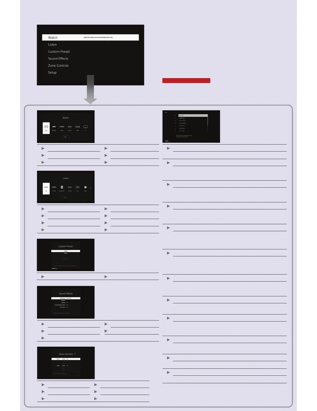 AUDIO IN, Input Mode, Preset Sound Field, In-Ceiling Speaker Mode, A/V Sync,