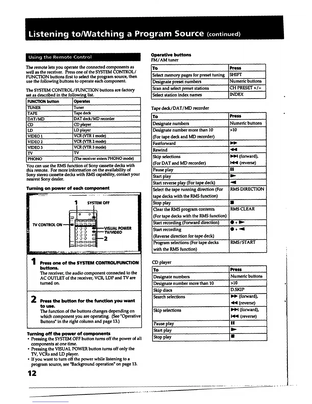 Sony STR-D1015 - Chapter 2 Basic Operations (Continued); Using the Remote Control