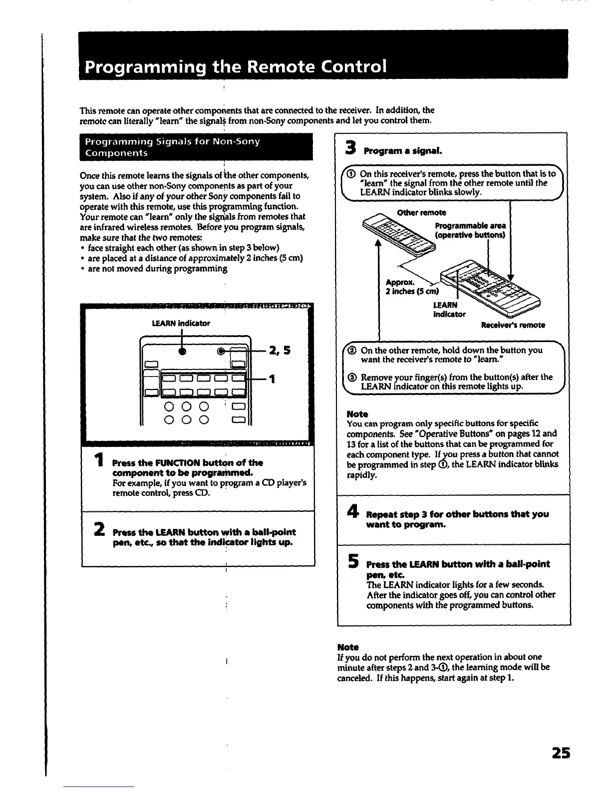 Sony STR-D1015 - Programming the Remote Control; Learning Non-Sony Remote Signals