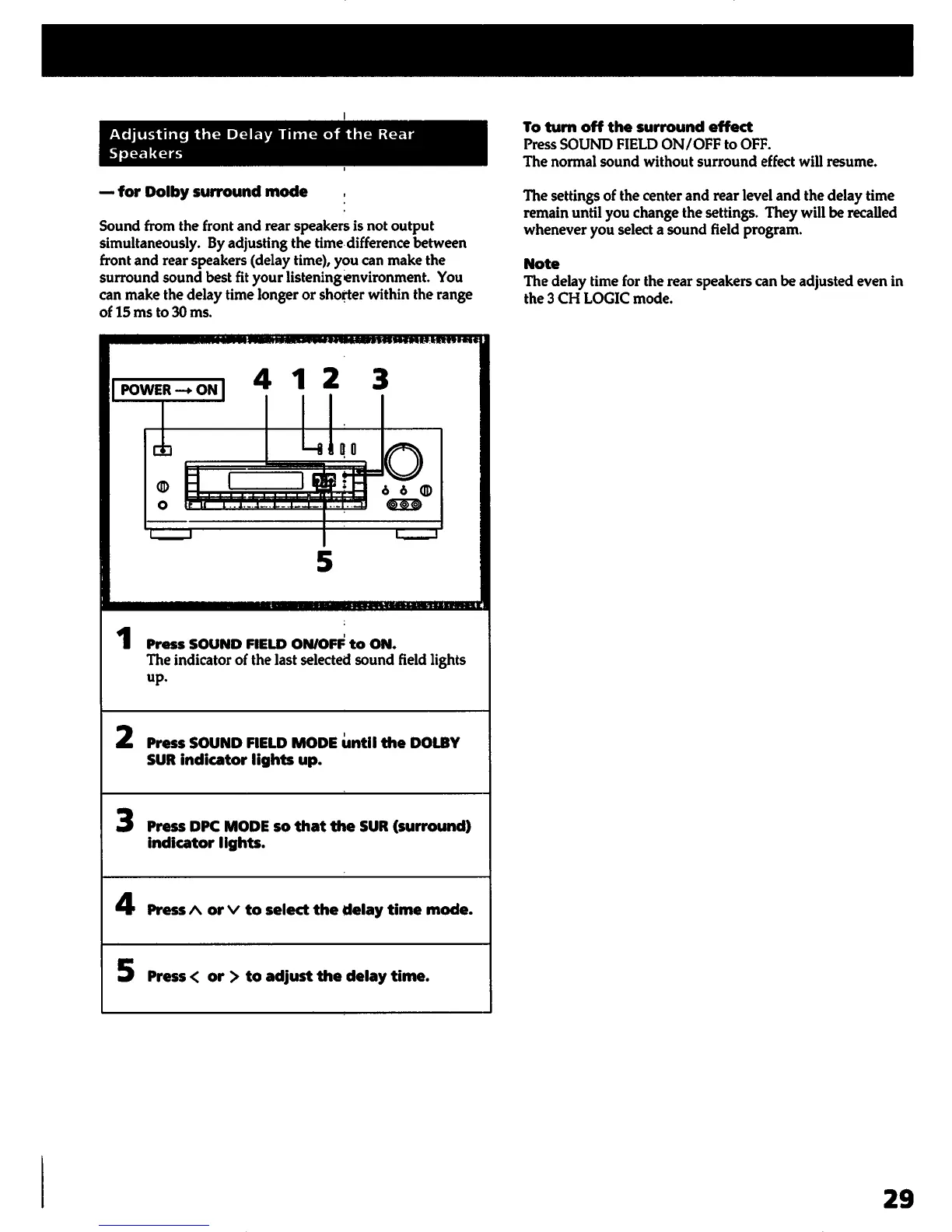 Sony STR-D1015 - Chapter 4 Sound Effects (Continued); Adjusting Rear Speaker Delay Time
