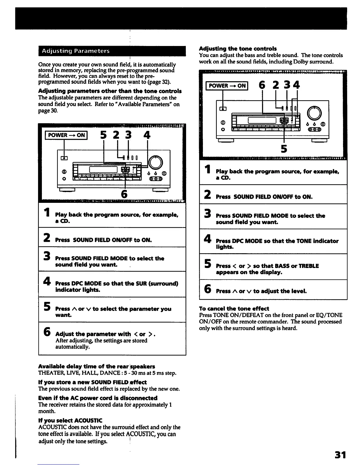 Sony STR-D1015 - Creating Custom Sound Fields (Continued); Adjusting Sound Field Parameters and Tone Controls