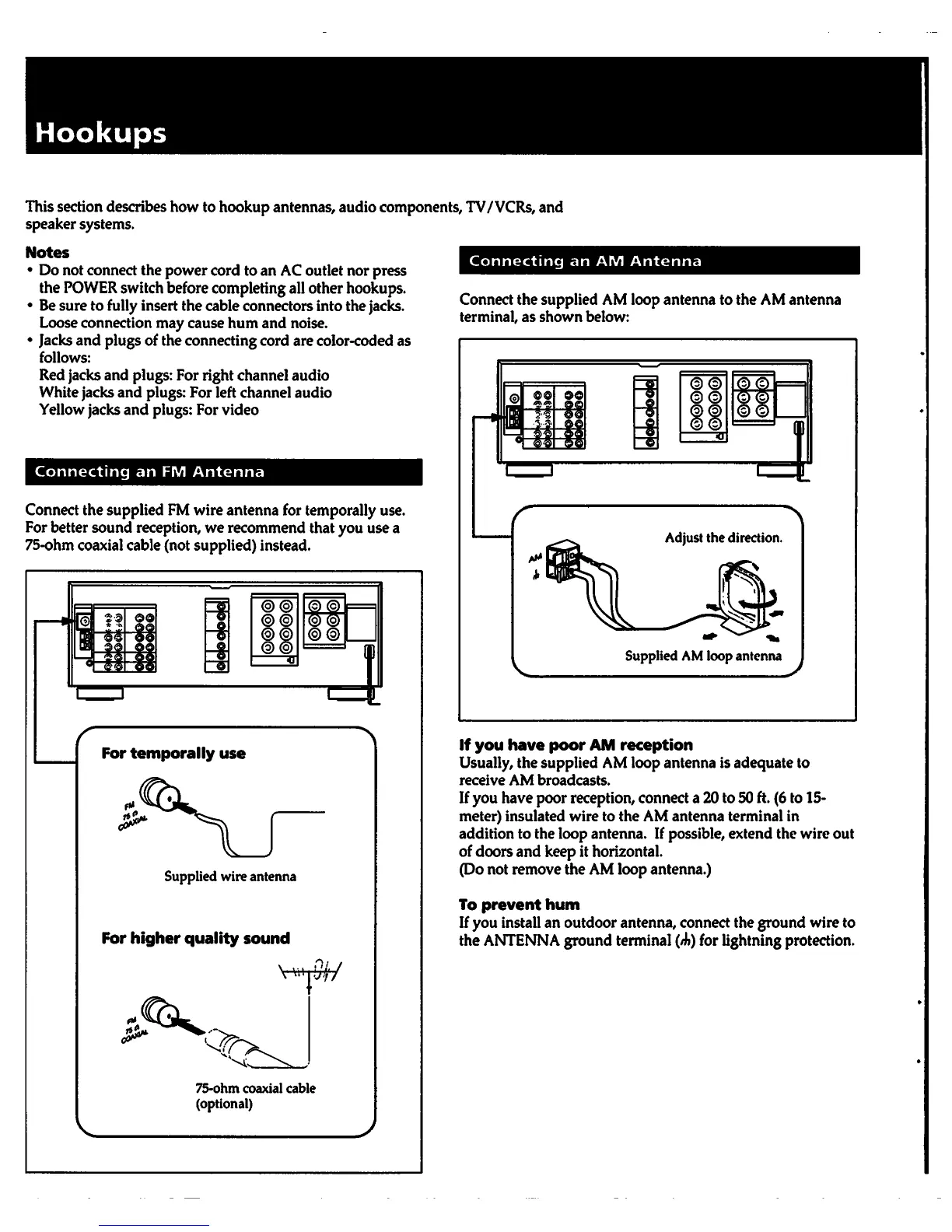 Sony STR-D1015 - Hookups; Connecting FM and AM Antennas
