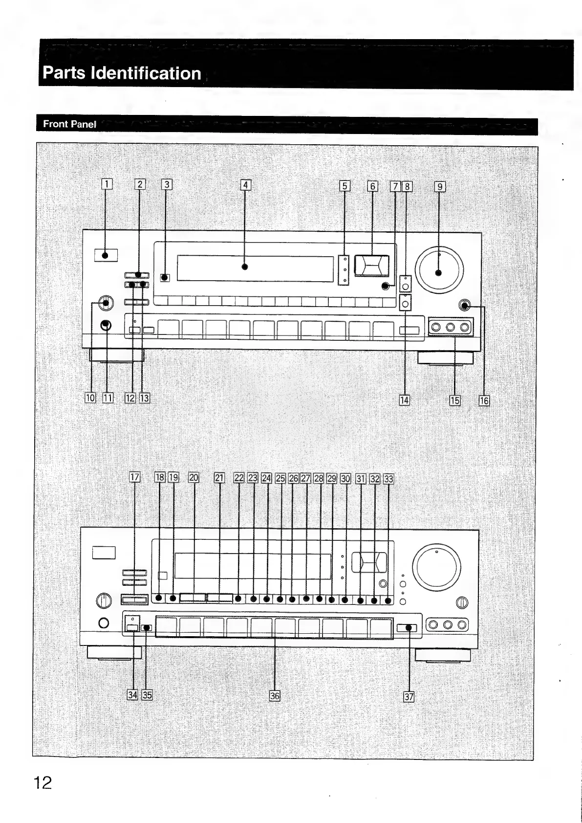 Sony STR-D1090 - Parts Identification: Front Panel; Front Panel Controls Layout