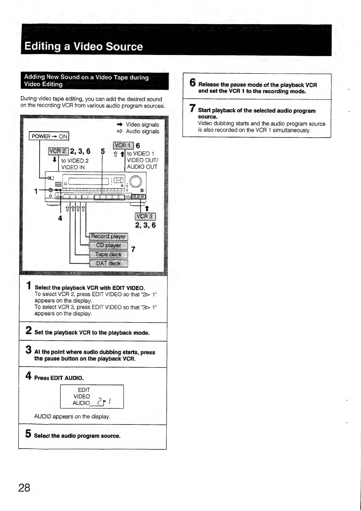 Sony STR-D1090 - Editing Video Sources: Adding New Audio; Audio Dubbing for Video Editing