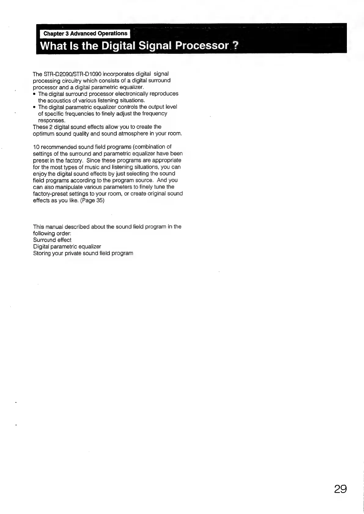 Sony STR-D1090 - Chapter 3: Advanced Operations; Understanding the Digital Signal Processor; Sound Field Program Overview