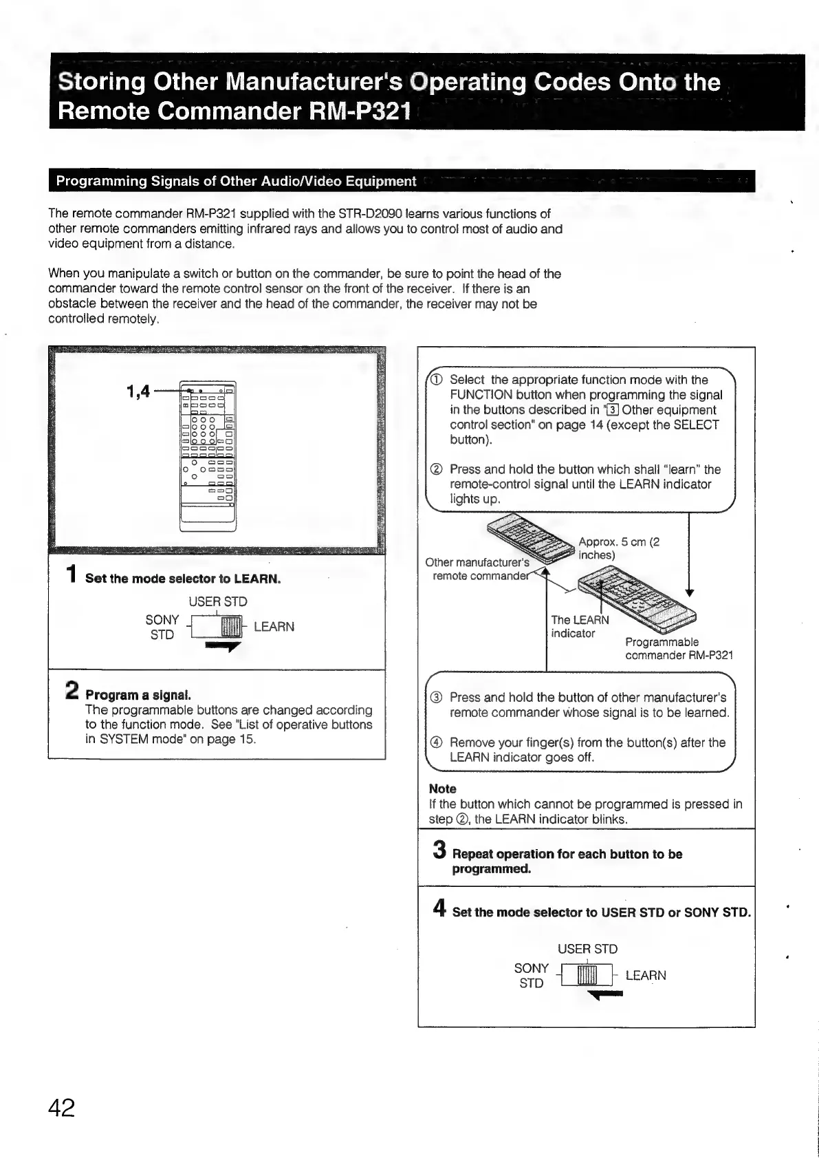 Sony STR-D1090 - Storing Other Manufacturers Remote Codes (RM-P321); Programming Remote Control Signals; Remote Code Memory Capacity