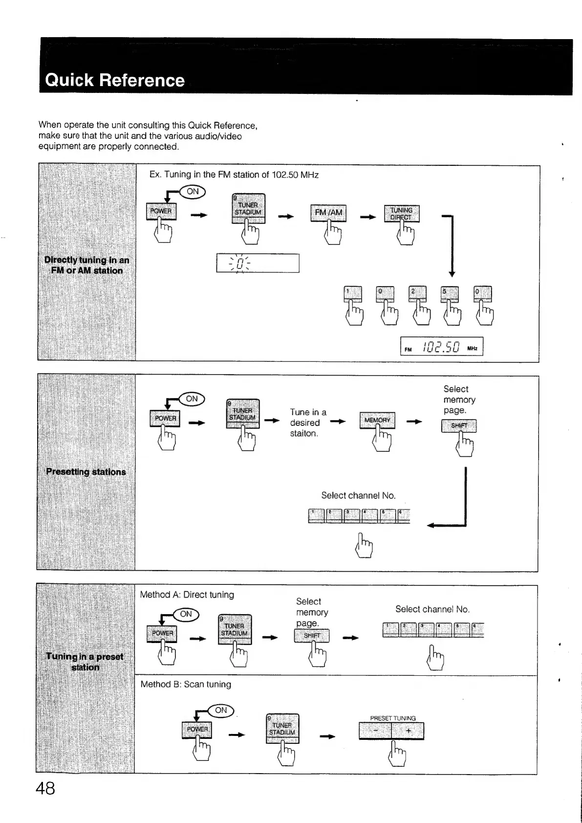 Sony STR-D1090 - Quick Reference: Tuning and Presets; Tuning Stations and Preset Operations