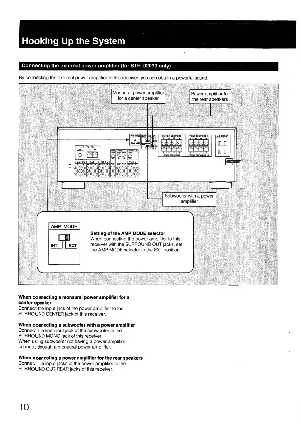 Sony STR-D2090 - Connecting External Power Amplifier