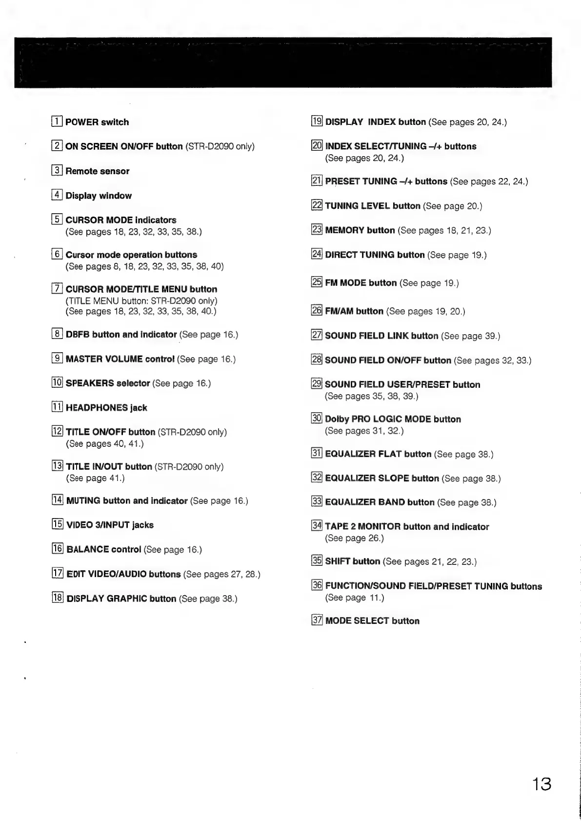 Sony STR-D2090 - Front Panel Button Functions