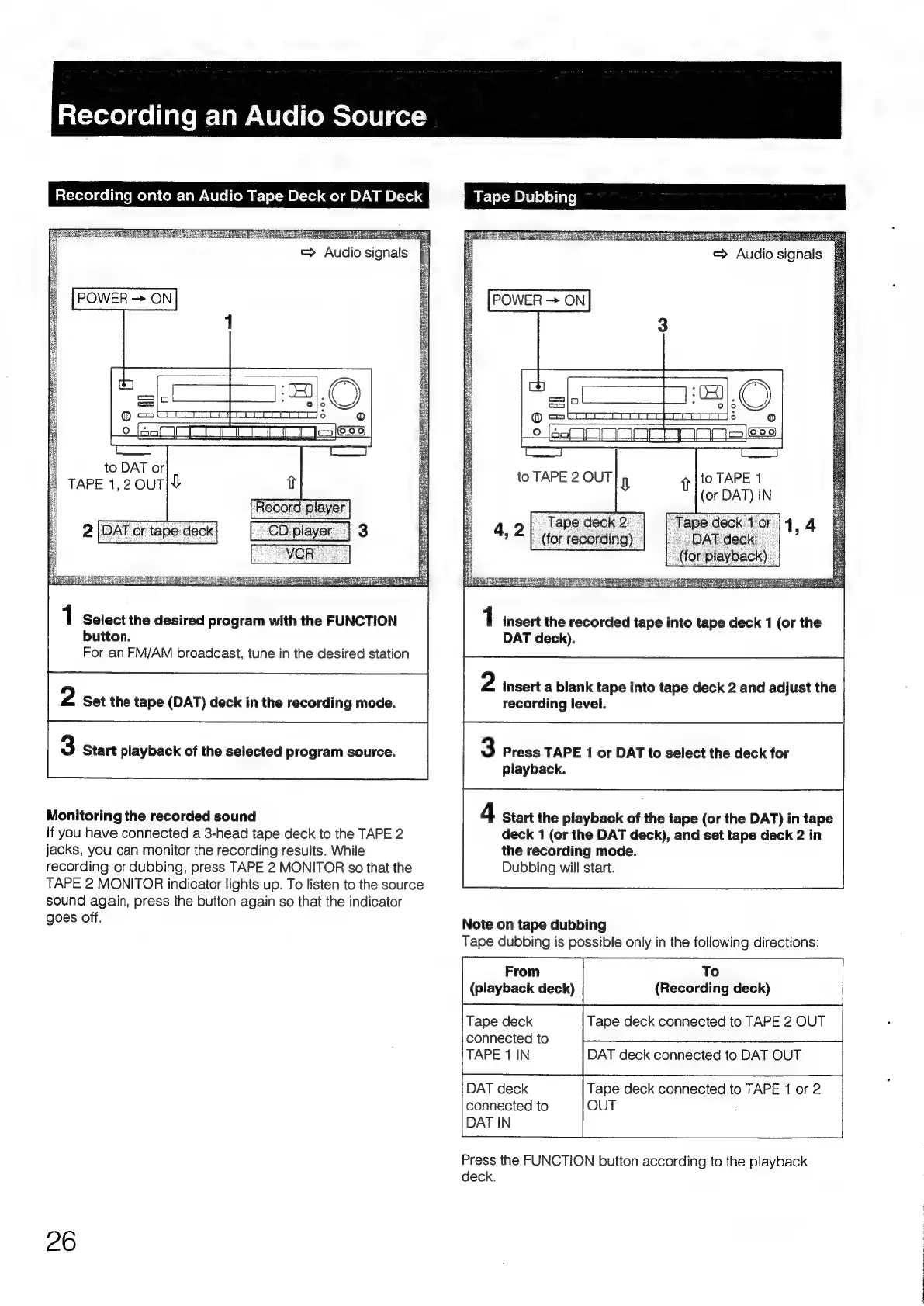 Sony STR-D2090 - Recording Audio Sources; Recording to Tape;DAT Decks; Tape Dubbing