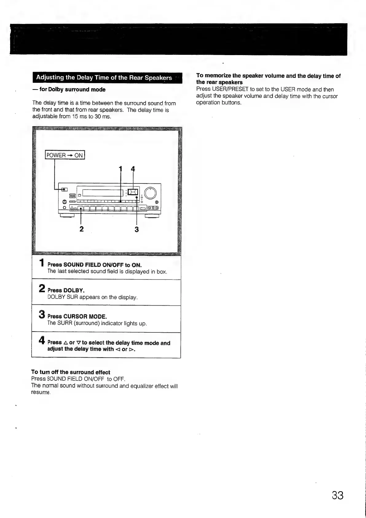 Sony STR-D2090 - Adjusting Rear Speaker Delay Time