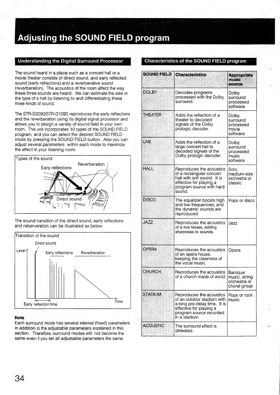 Sony STR-D2090 - Adjusting the SOUND FIELD Program