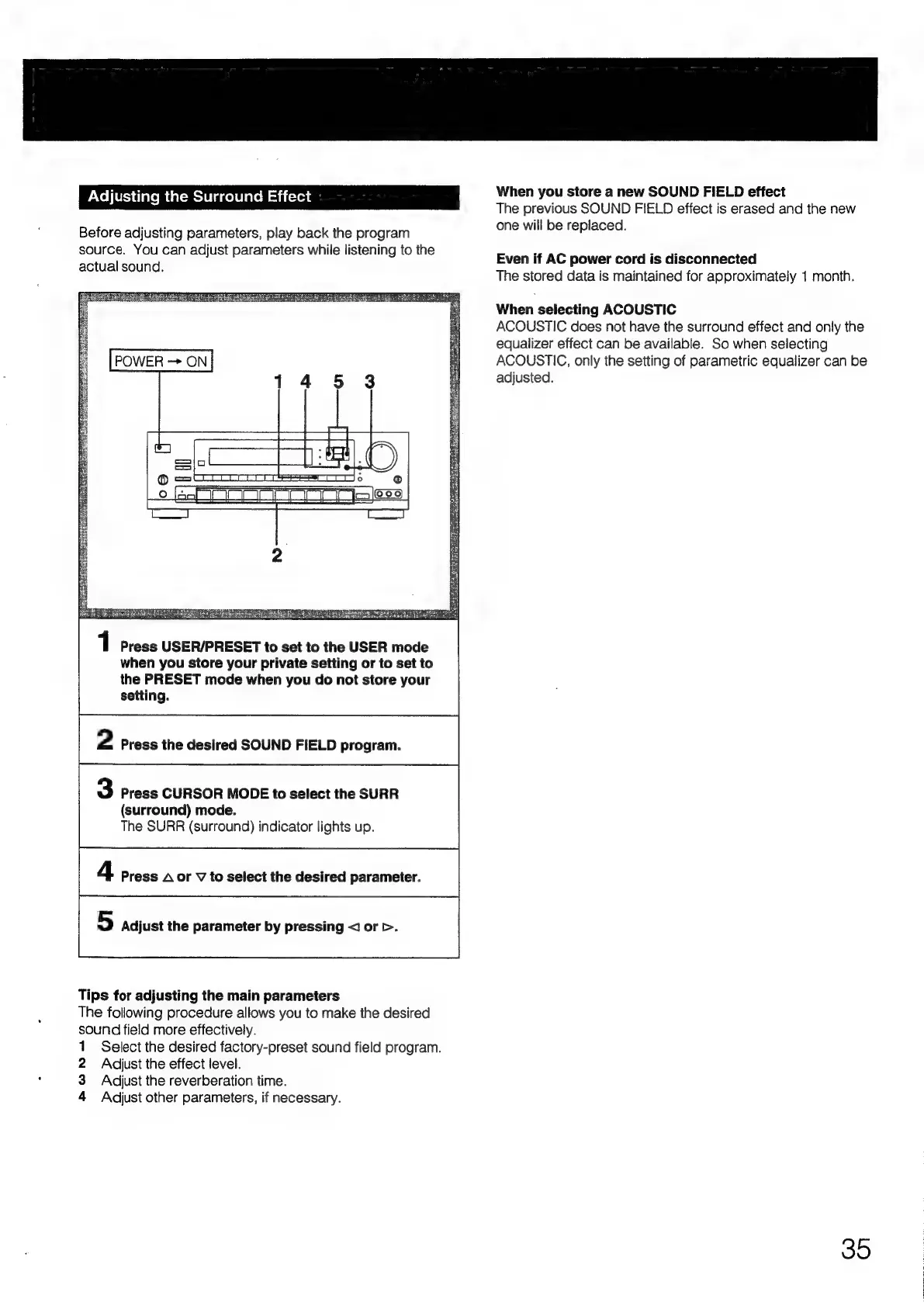 Sony STR-D2090 - Adjusting Surround Effect Parameters