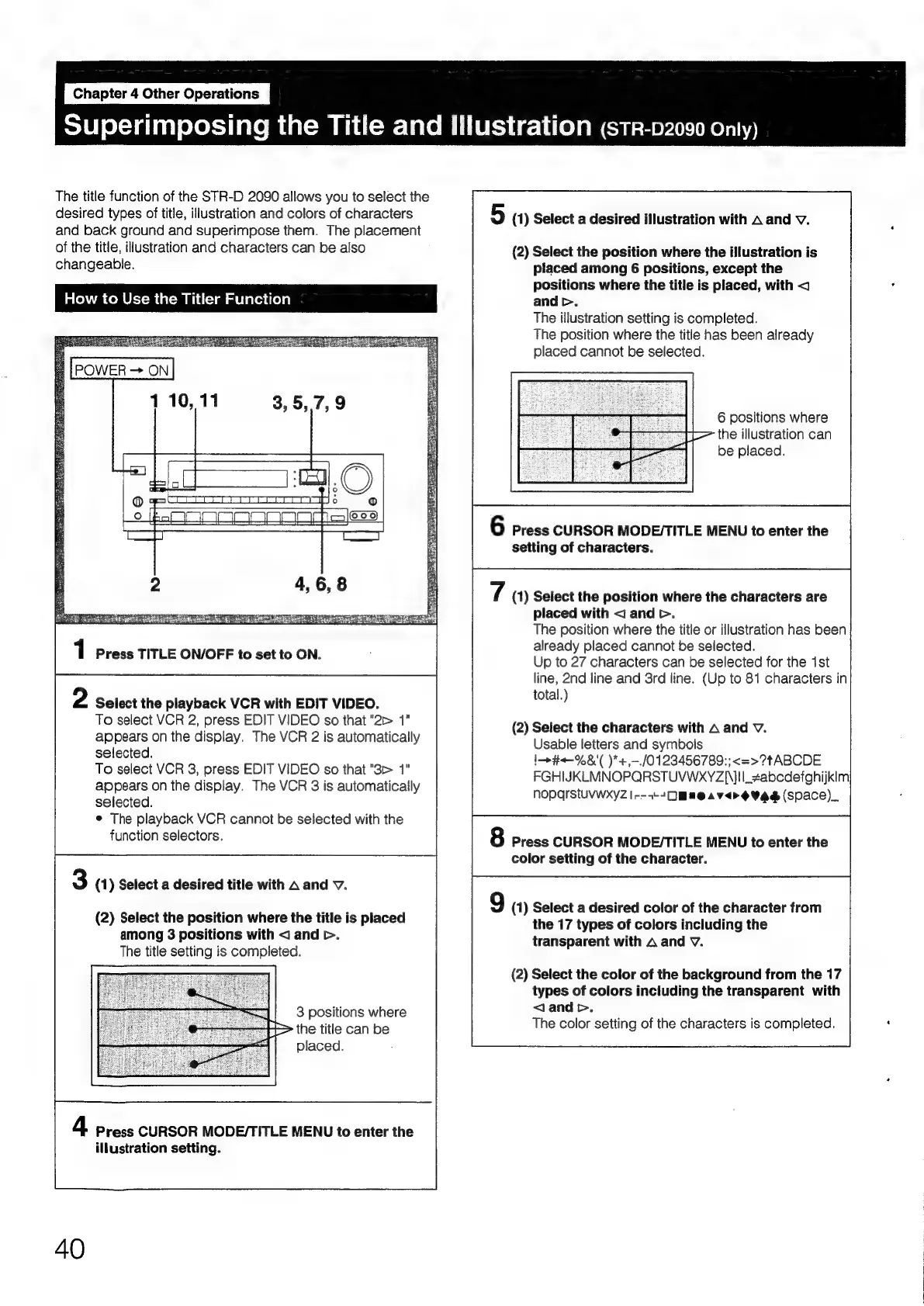Sony STR-D2090 - Chapter 4 Other Operations; Superimposing Title and Illustration (STR-D2090)