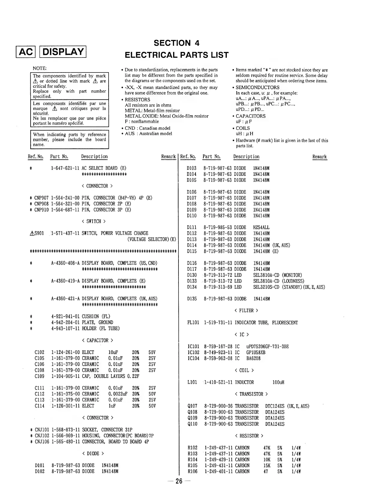 Sony STR-D311 - Section 4 Electrical Parts List; Component Details