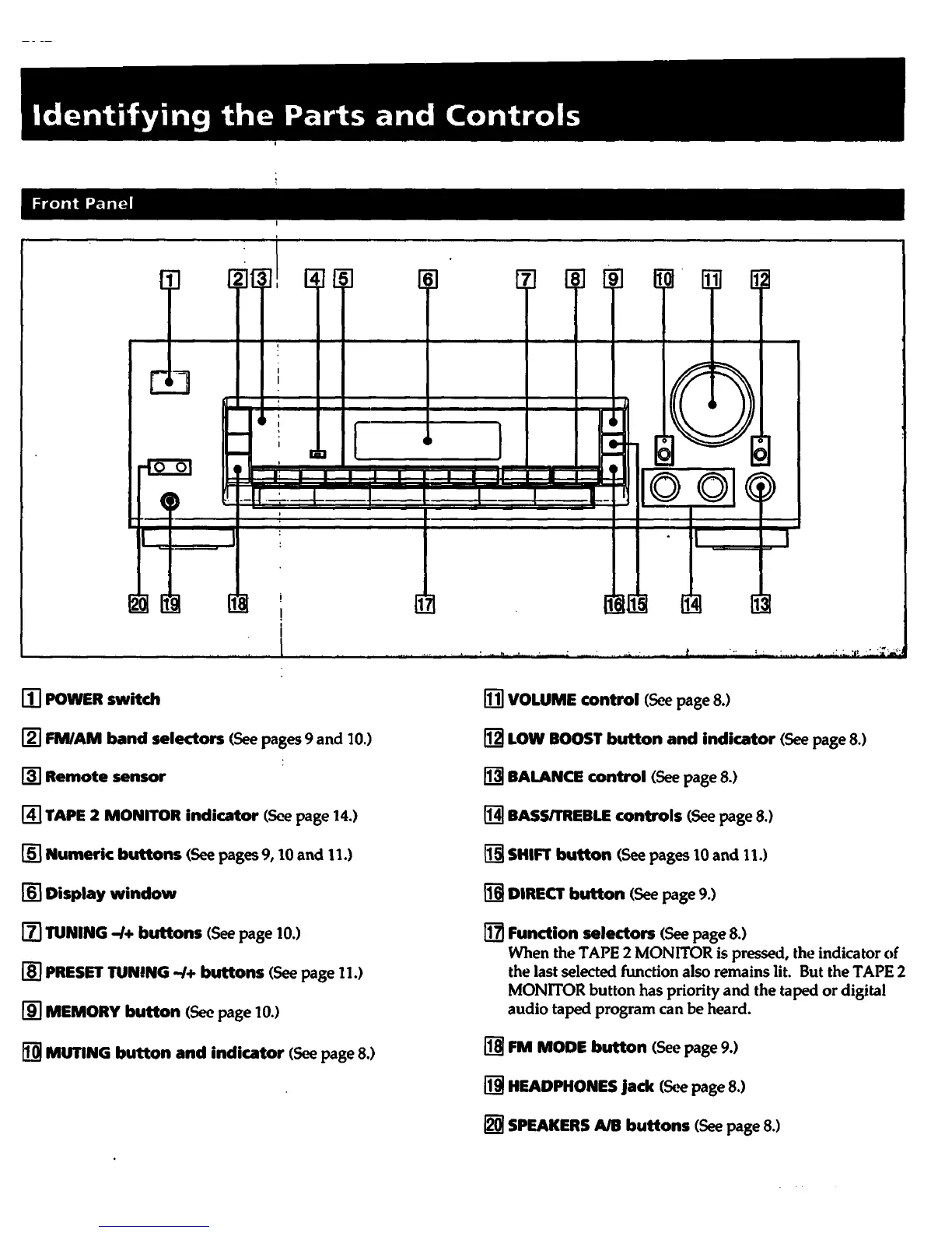 Sony STR-D315 - Front Panel Layout and Functions