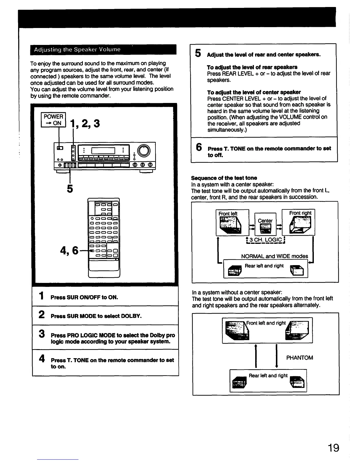 Sony STR-D511 - Adjusting Surround Sound Volume; Setting Speaker Levels and Test Tone