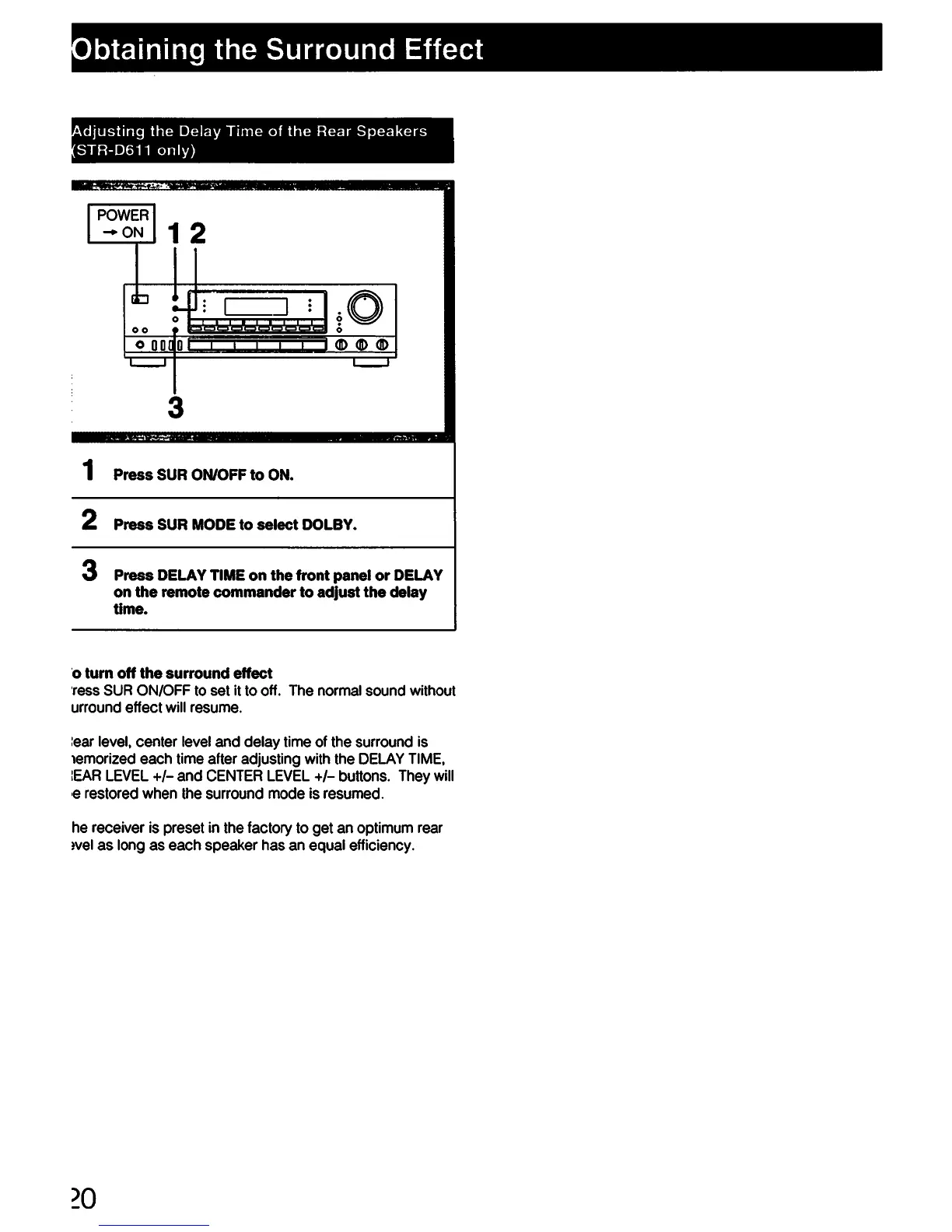 Sony STR-D511 - Advanced Operations; Adjusting Rear Speaker Delay Time (STR-D611)