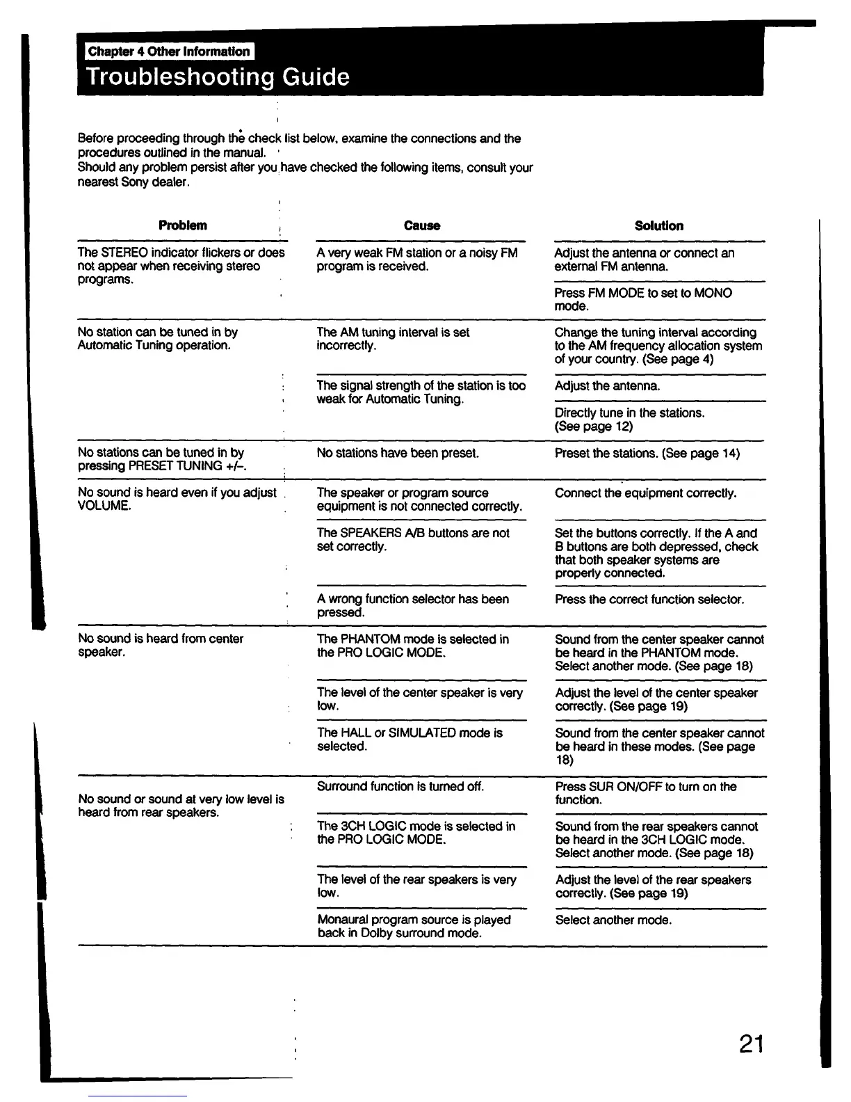 Sony STR-D511 - Troubleshooting and Problem Solving; Common Issues and Solutions