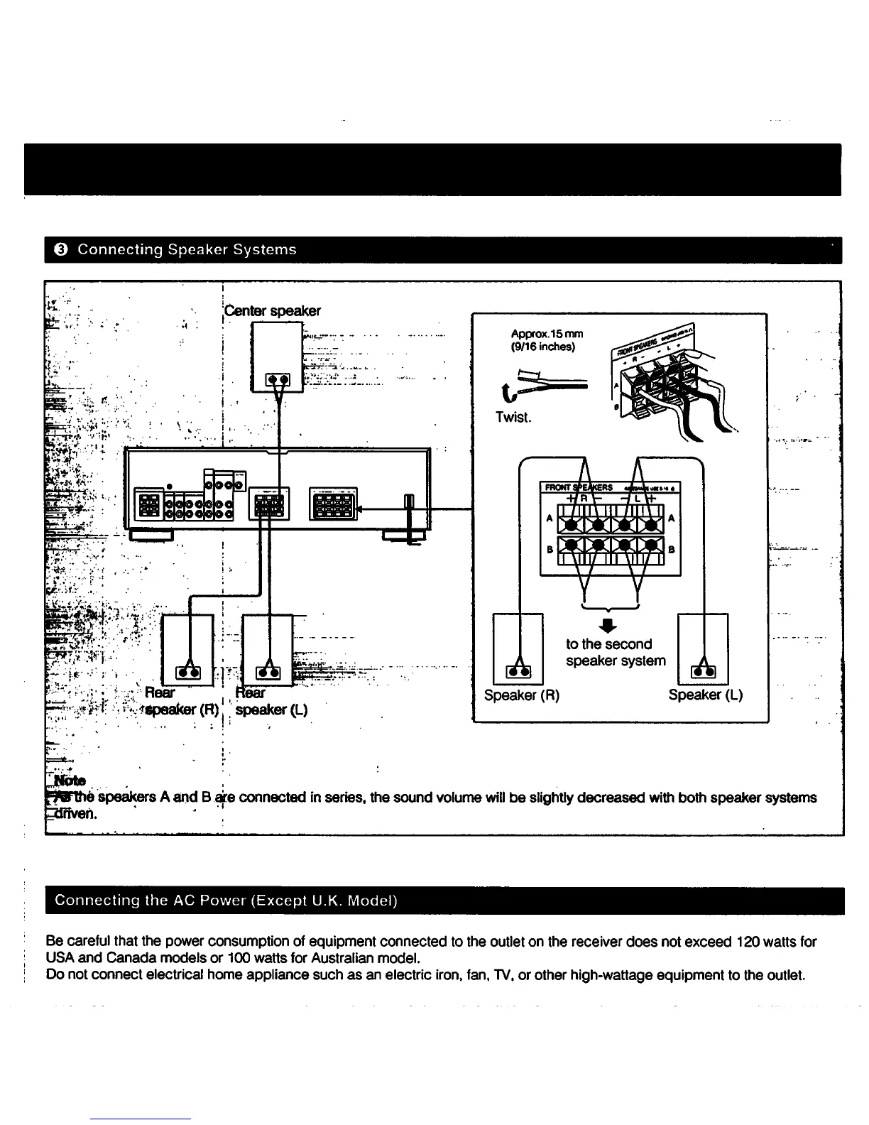 Sony STR-D511 - Hooking Up the System; Speaker System Wiring; AC Power Cord Connection