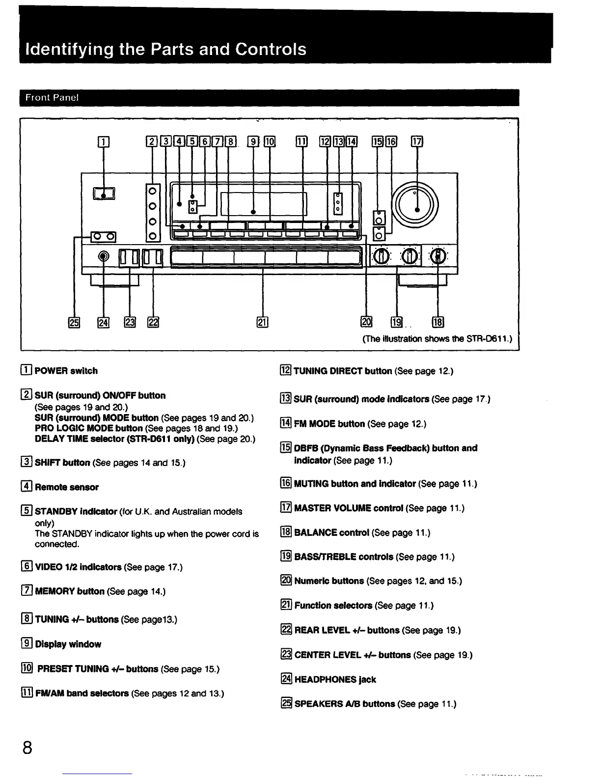 Sony STR-D511 - Identifying Unit Controls; Front Panel Layout and Indicators