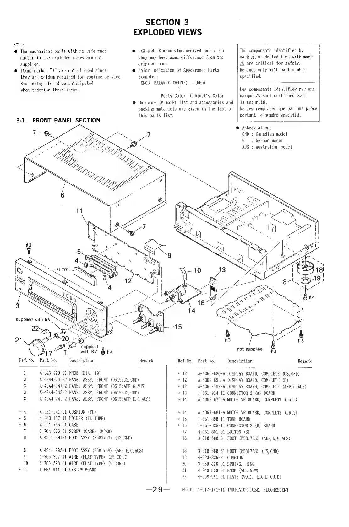 Sony STR-D515 - Exploded Views - Front Panel Section