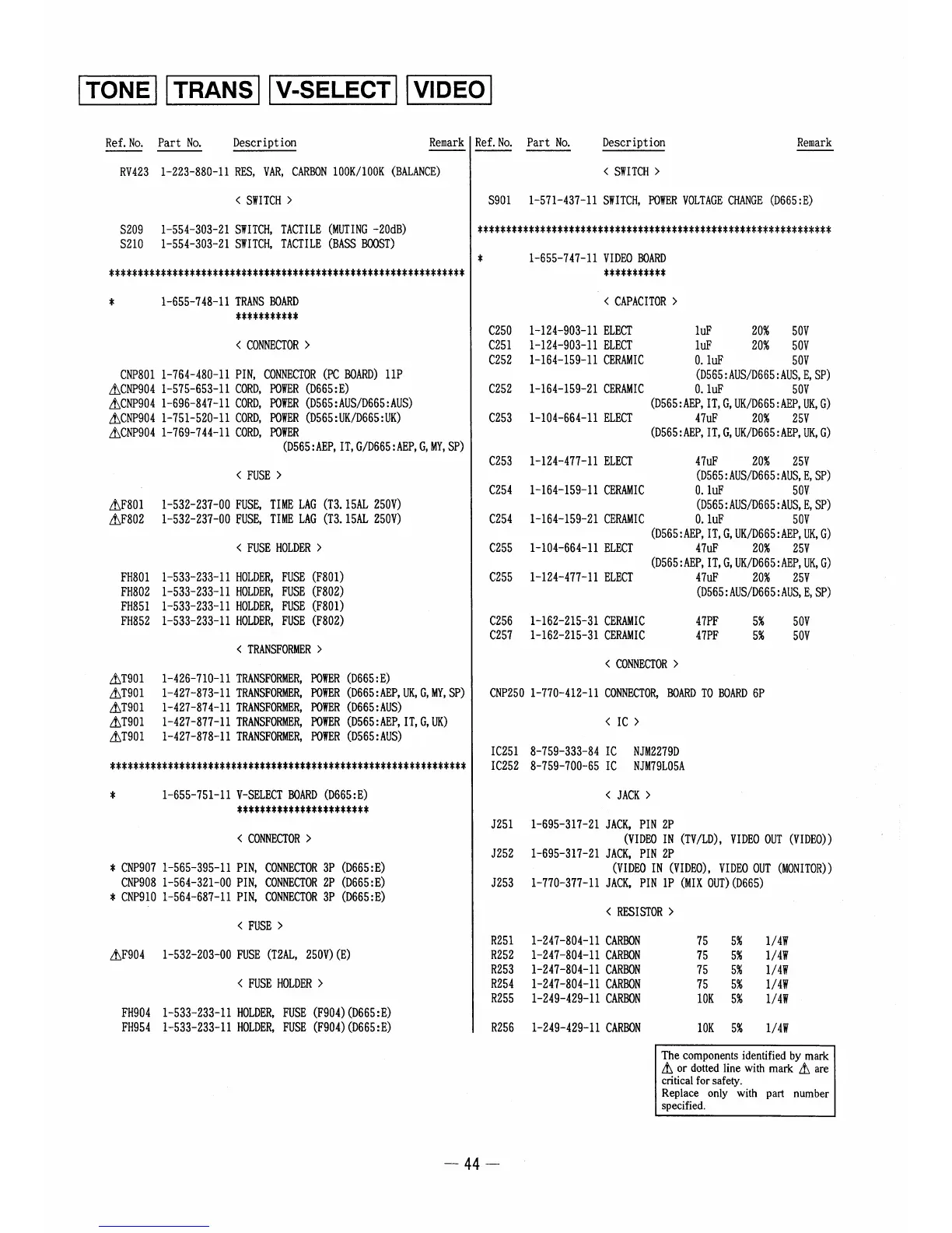 Sony STR-D565 - Tone, Trans, V-Select, and Video Components