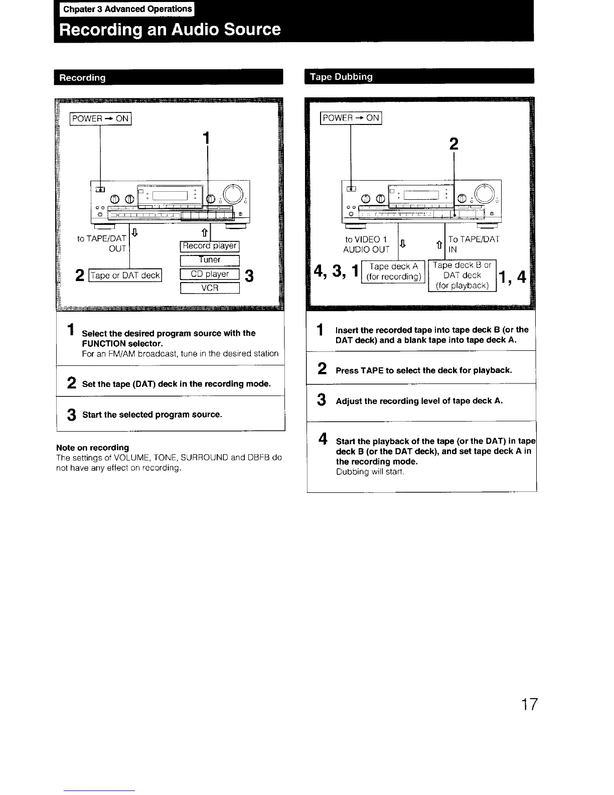Sony STR-D590 - Chapter 3 Advanced Operations; Recording Audio Sources; Performing Tape Dubbing