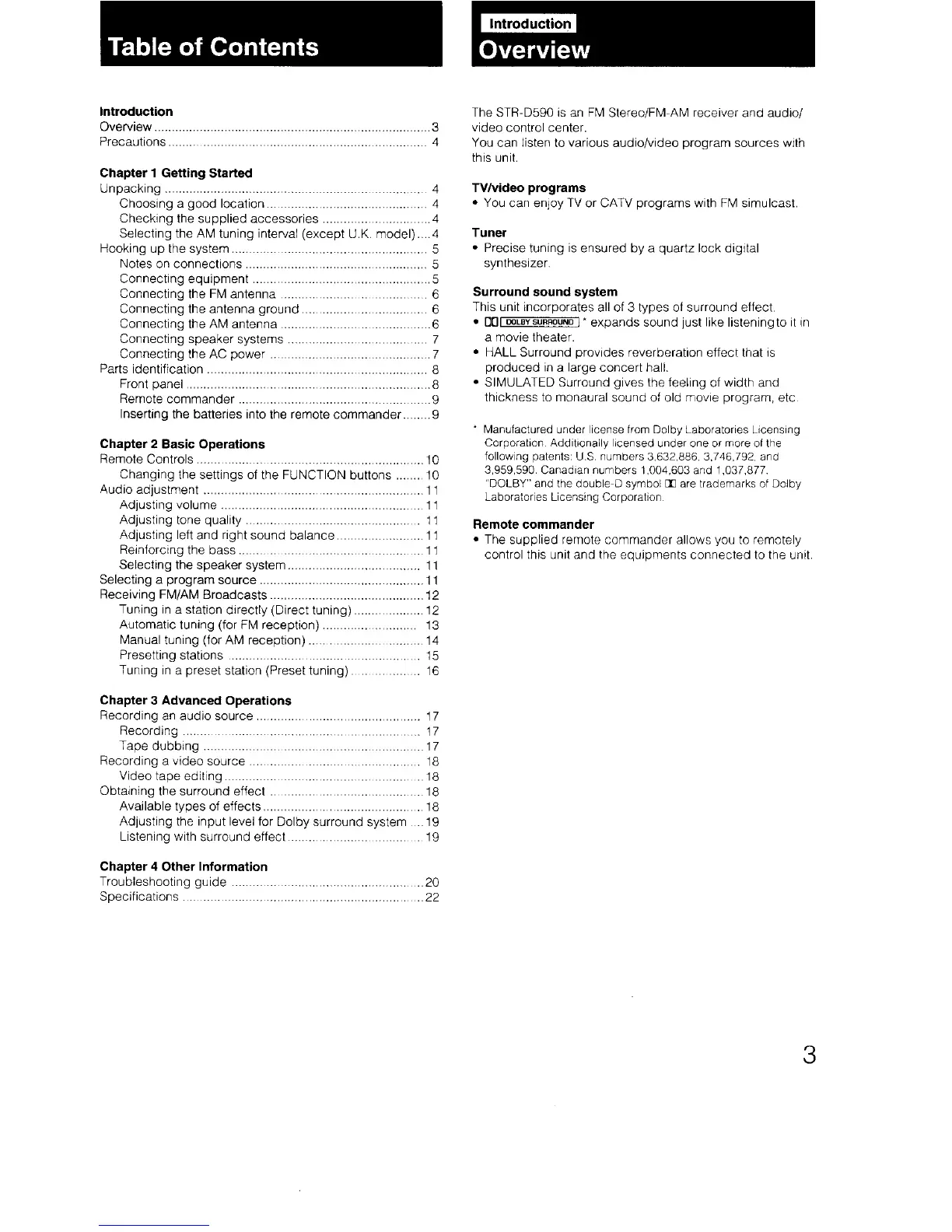 Sony STR-D590 - Table of Contents