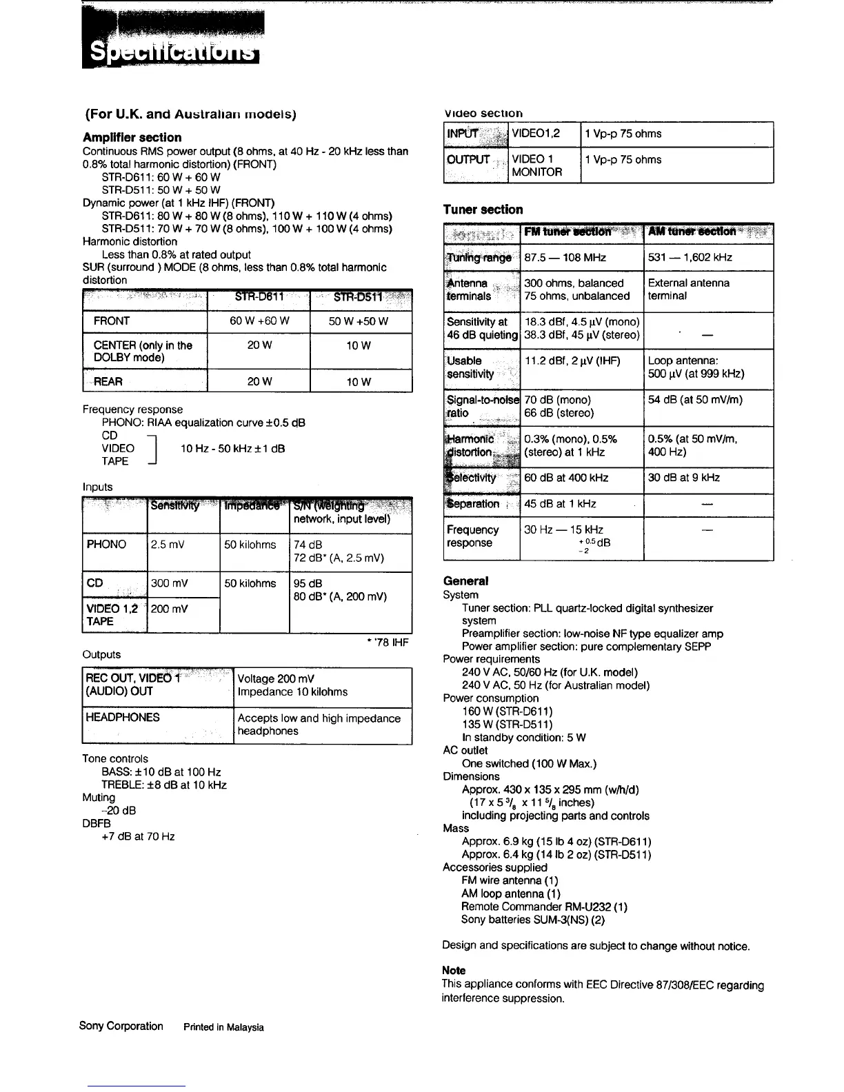 STR-D511 : 50 W + 50 W