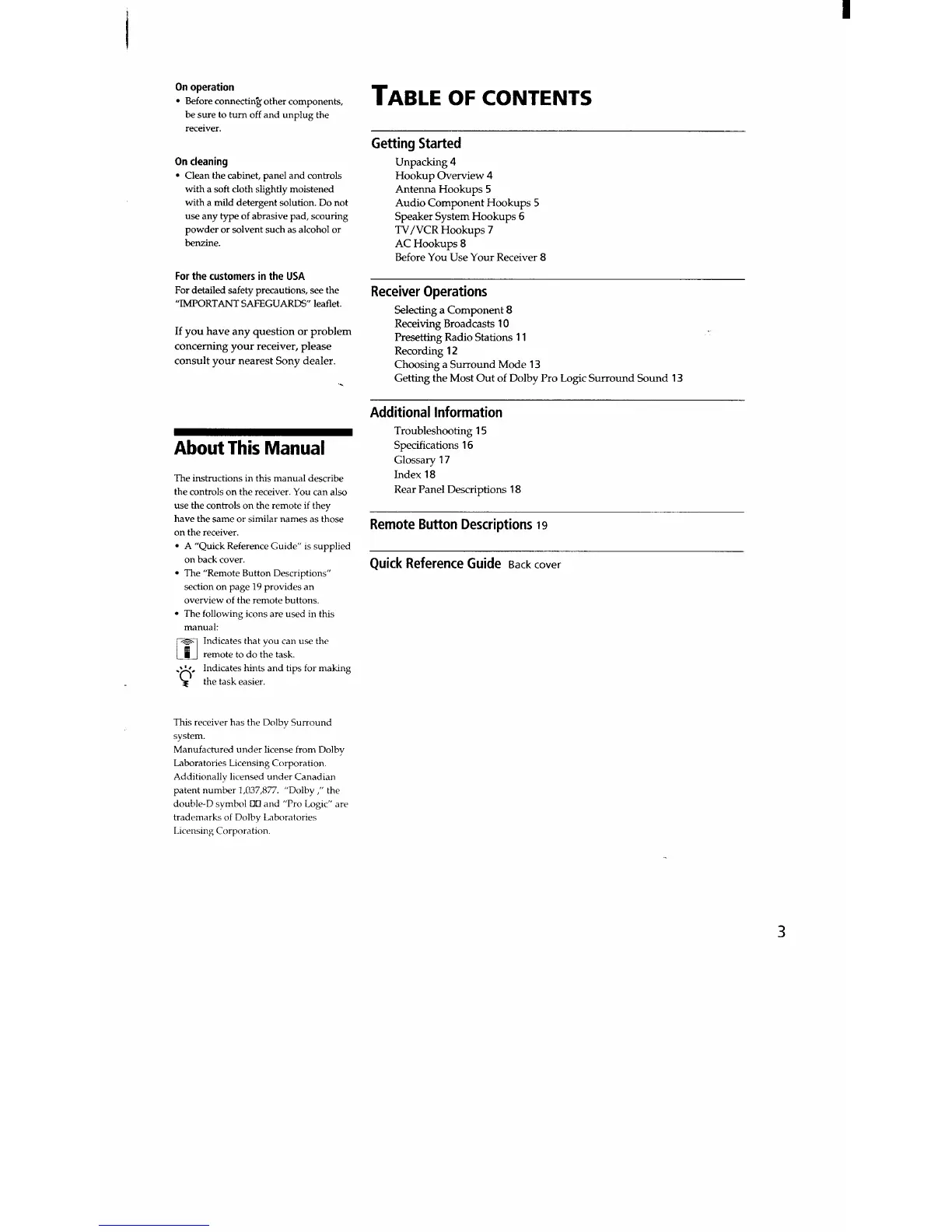 Sony STR-D665 - Operational Guidelines; Operation, Cleaning, and Support; Understanding the Manual Structure