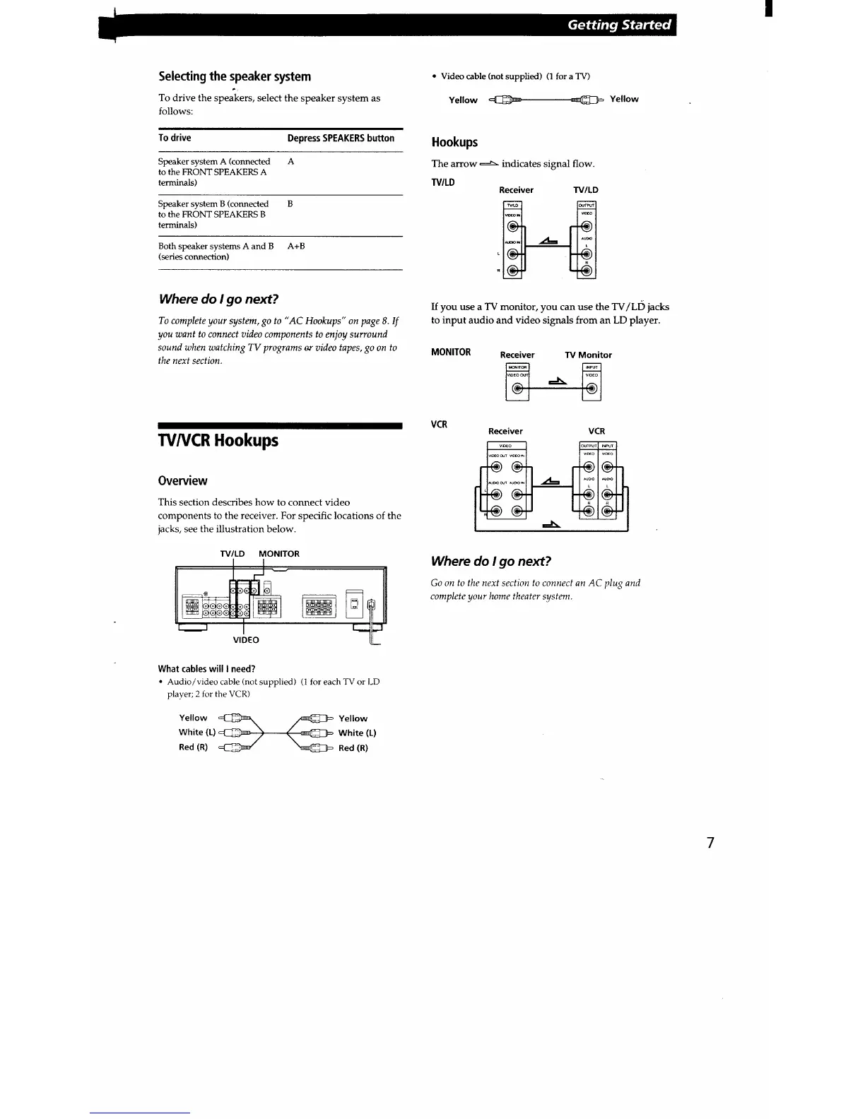 Sony STR-D665 - System Integration and Video Input; Speaker System Selection; TV;VCR Hookups