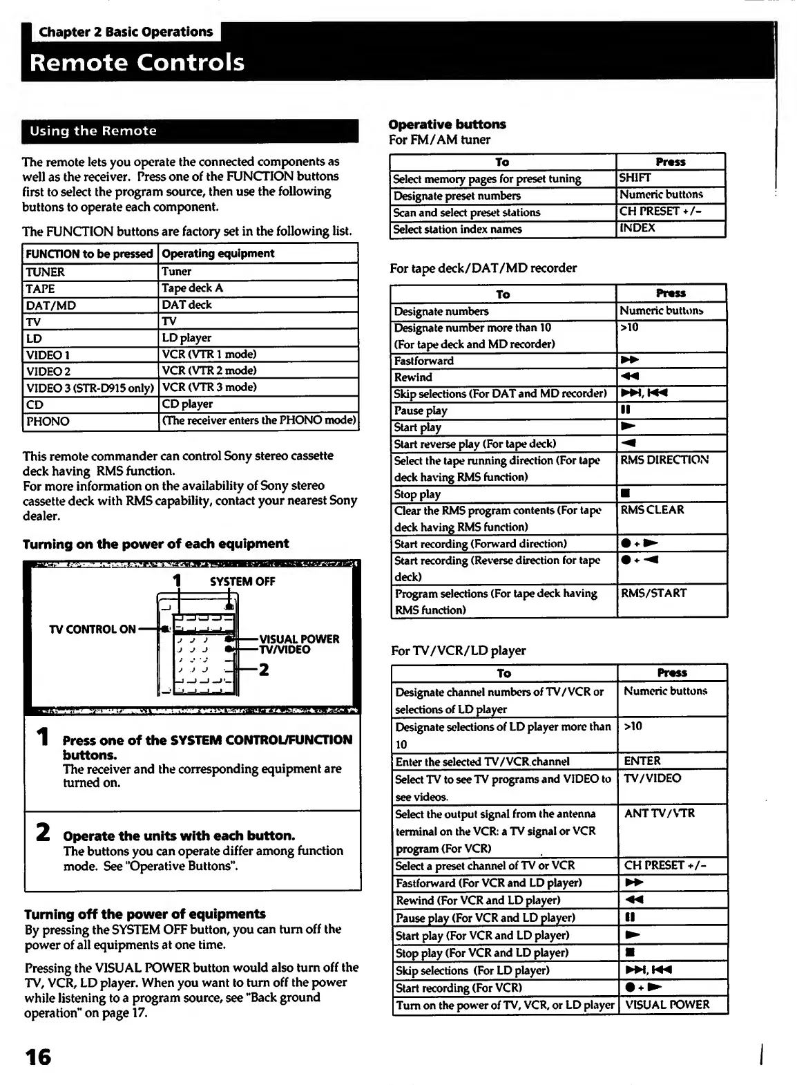 Sony STR-D715 - Remote Controls and Operations; Using the Remote Commander