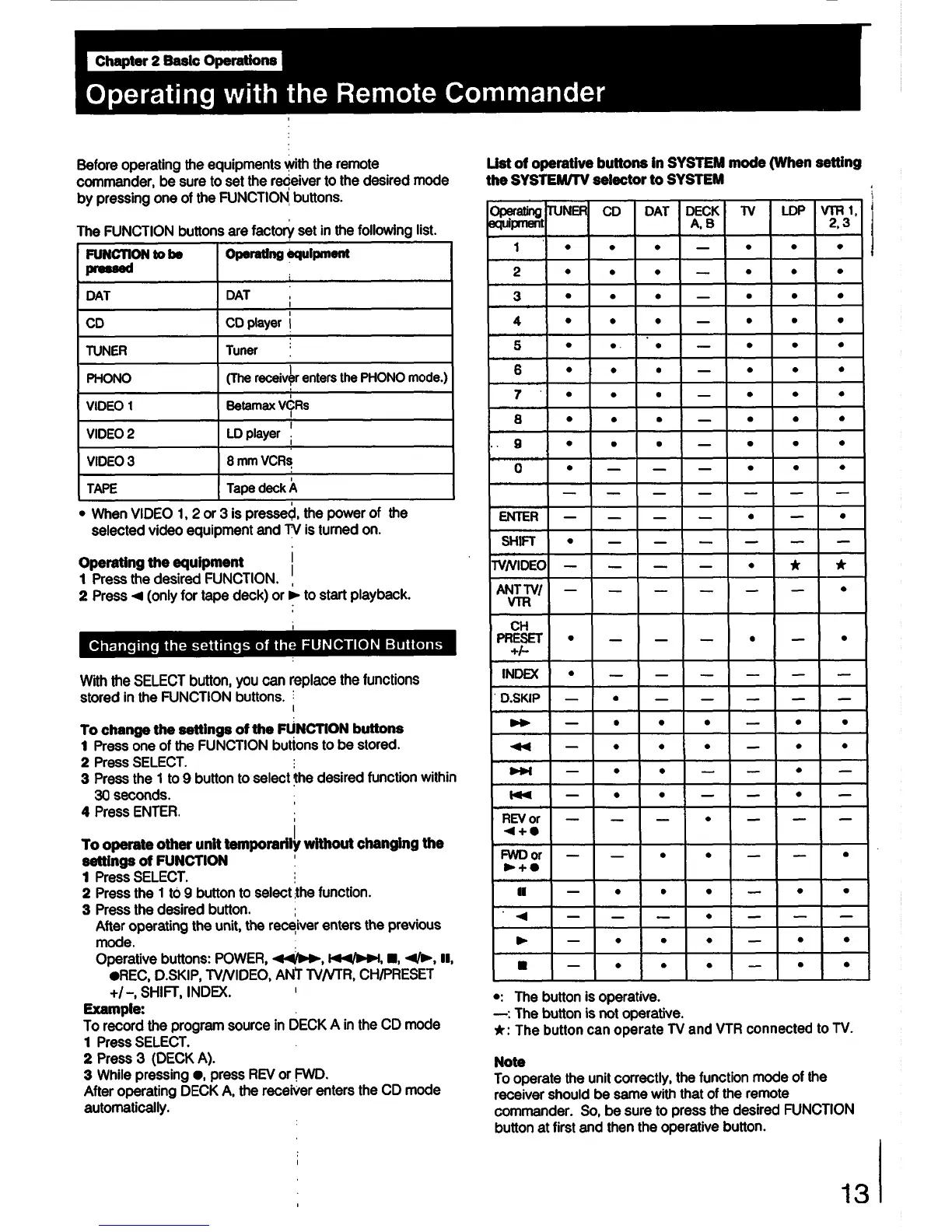Sony STR-D790 - Basic Operations; Operating with the Remote Commander