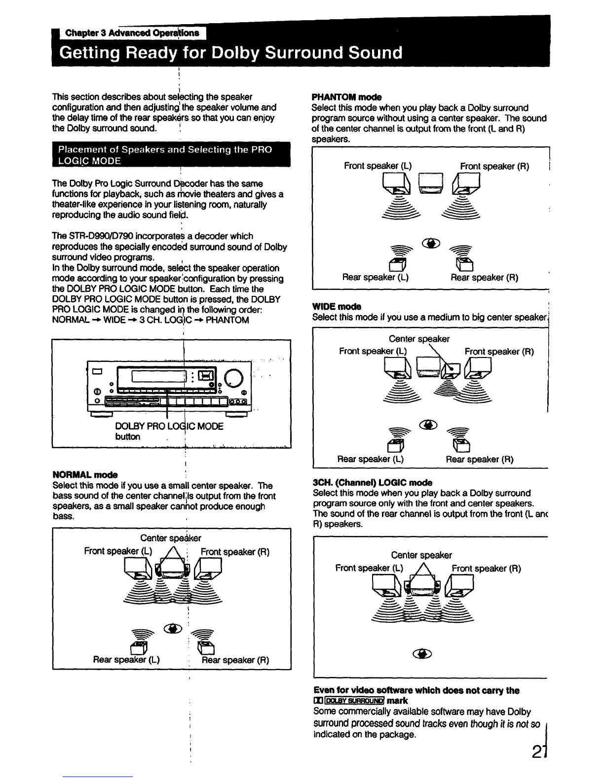 Sony STR-D790 - Advanced Operations: Dolby Surround; Speaker Setup for Surround Sound; Understanding Dolby Surround Modes
