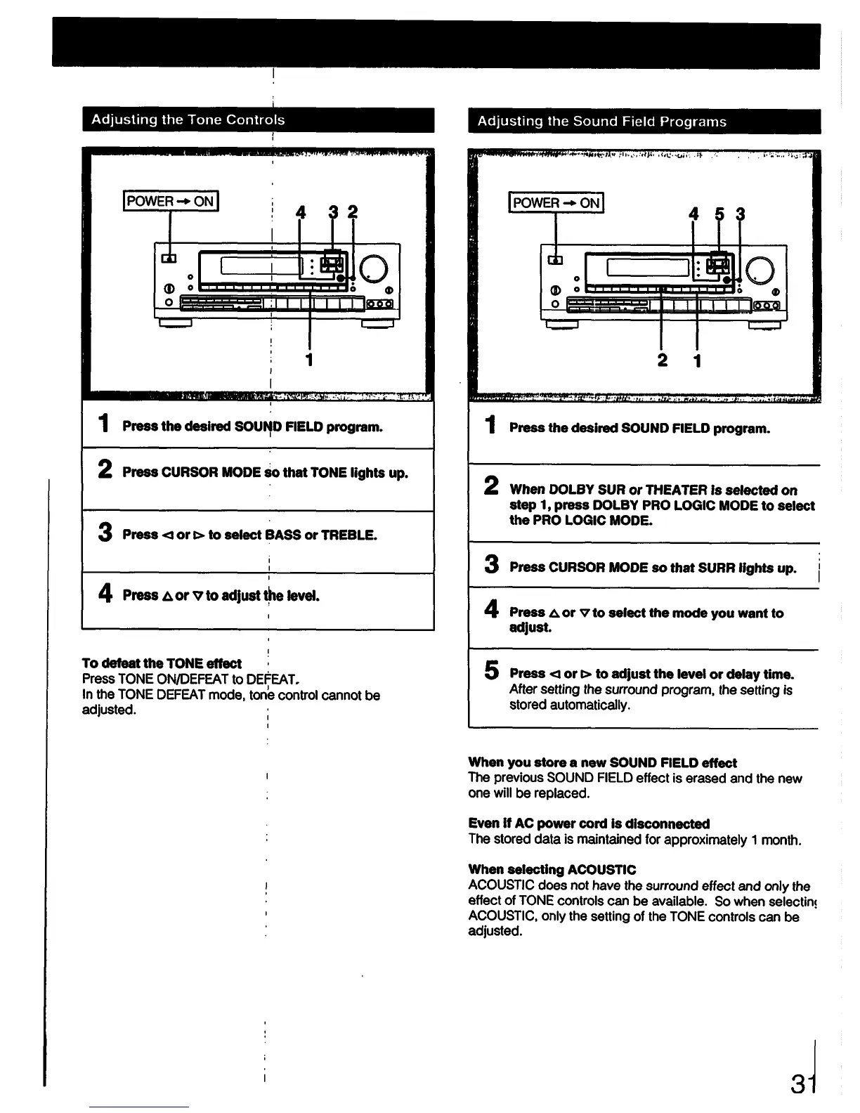 Sony STR-D790 - Adjusting Tone Controls (Bass;Treble); Customizing Sound Field Programs