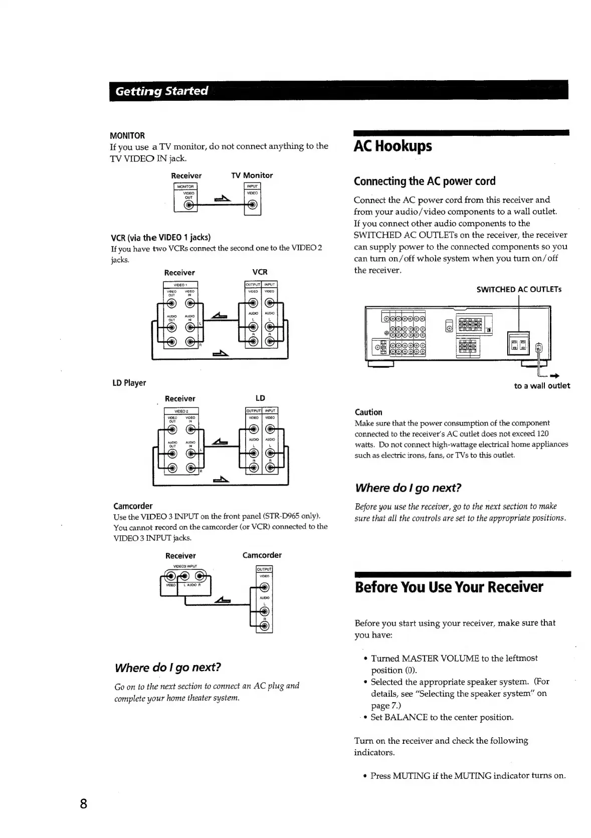 Sony STR-D865 - Power and Final Setup; AC Power Connections; Before Initial Operation