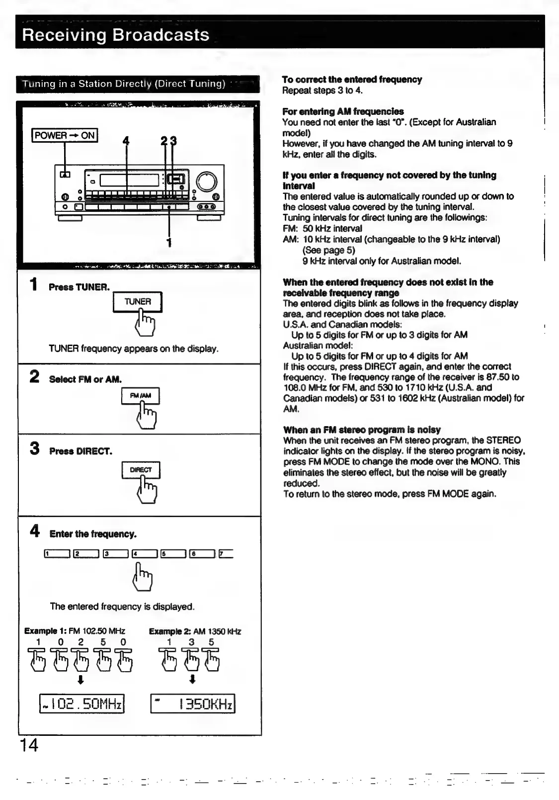 Sony STR-D911 - Receiving Broadcasts: Tuning; Direct Station Tuning Method