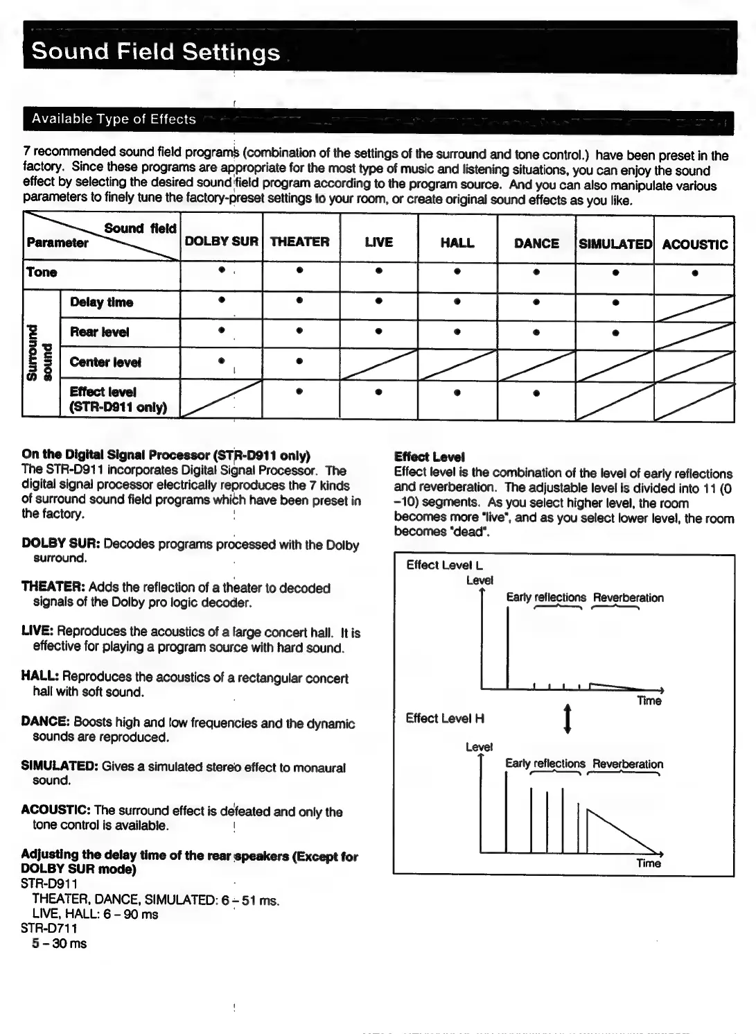 Sony STR-D911 - Overview of 7 Sound Field Programs