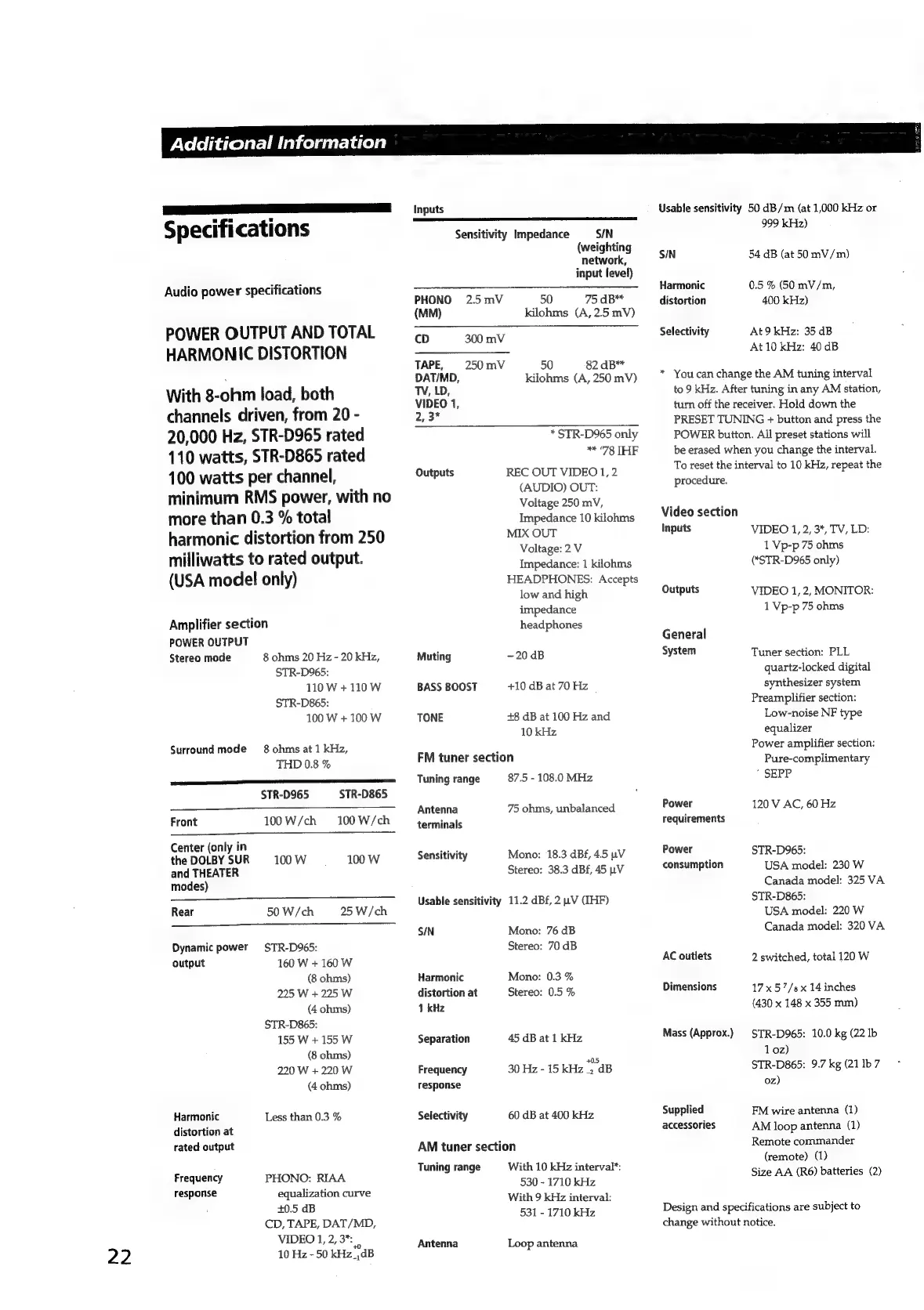 Sony STR-D965 - Specifications
