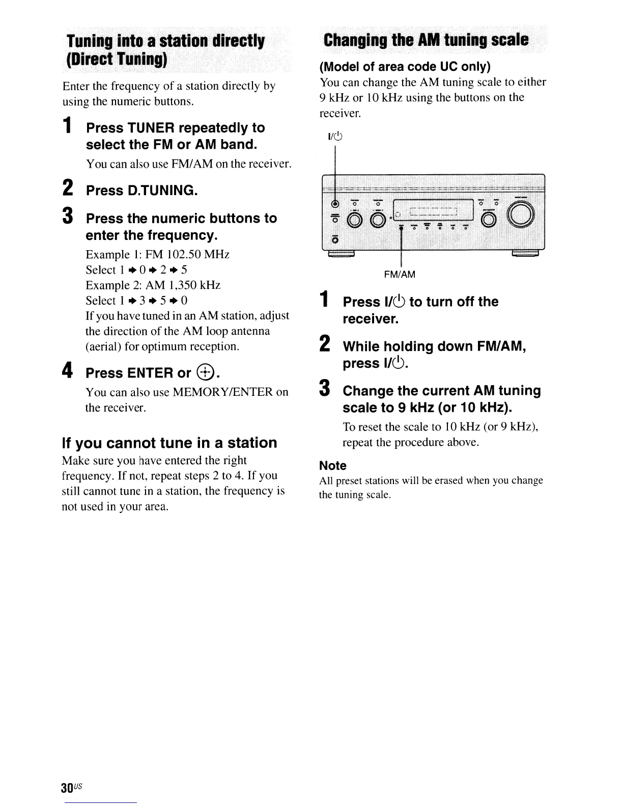2 While holding down FM/AM,