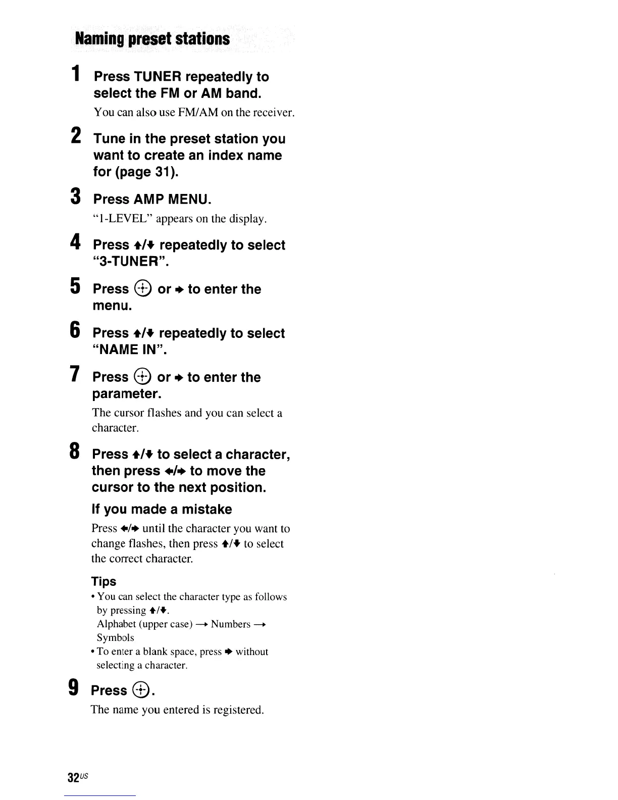 • To enter a blank space, press