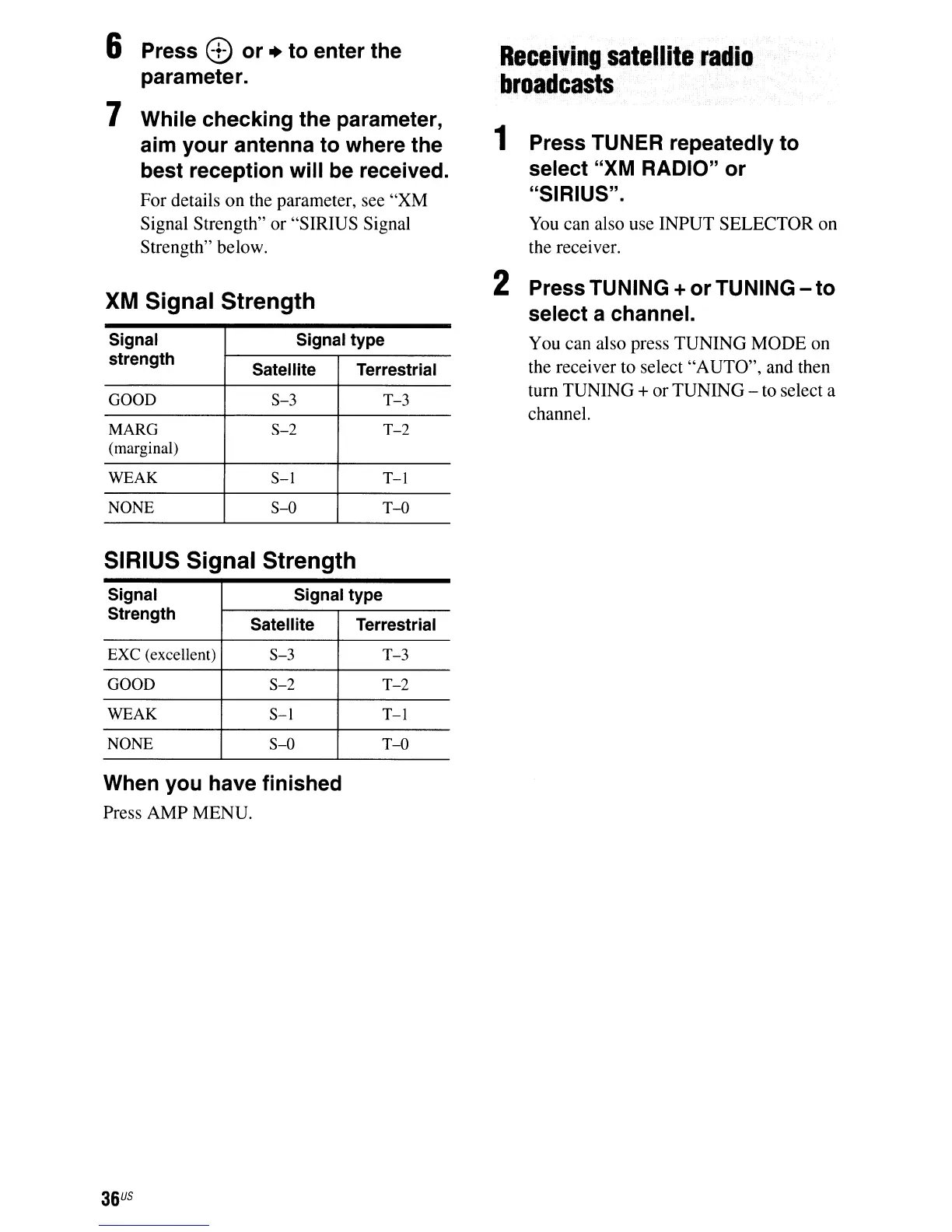 Signal Strength" or "SIRIUS Signal