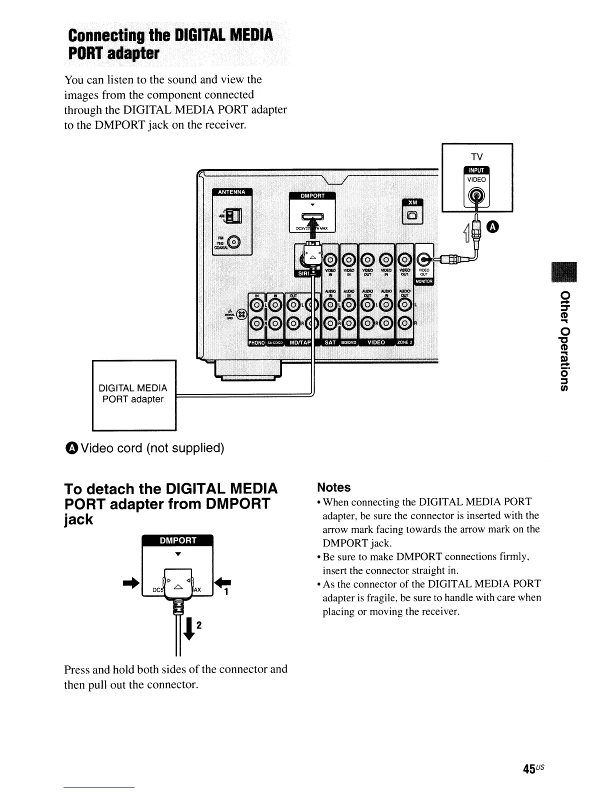 • When connecting the DIGITAL MEDIA PORT