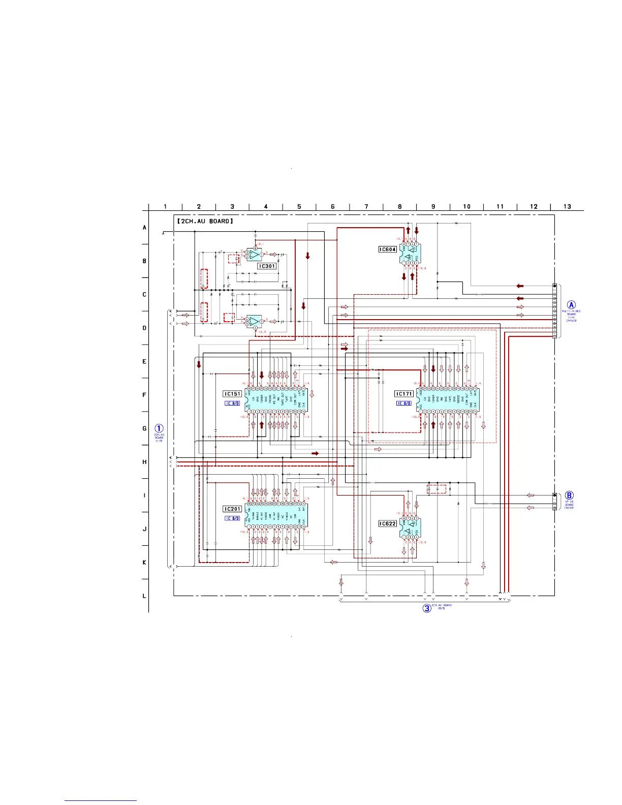 6-13. SCHEMATIC DIAGRAM – 2CH. AU Board (2/3) – • See page 69 for IC Block Diagrams.