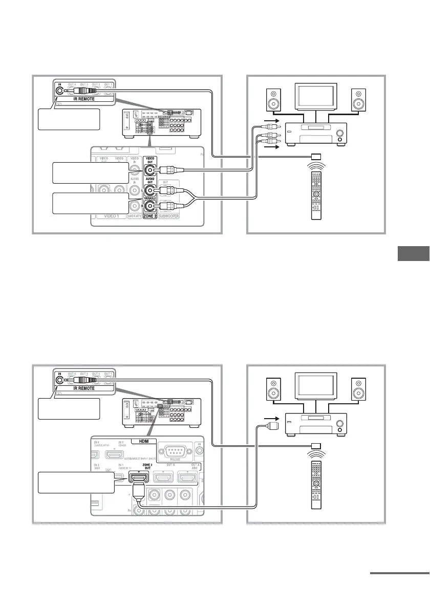 Outputs HDMI input video/audio signals in zone 2 using the HDMI ZONE 2 OUT jack of the