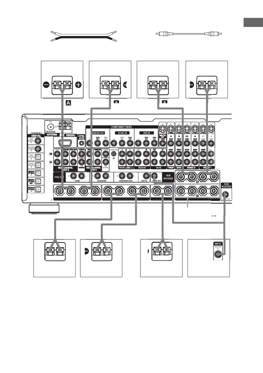 the SPEAKERS jacks and the PRE OUT jacks. For example, if you want to connect just the front speakers to another