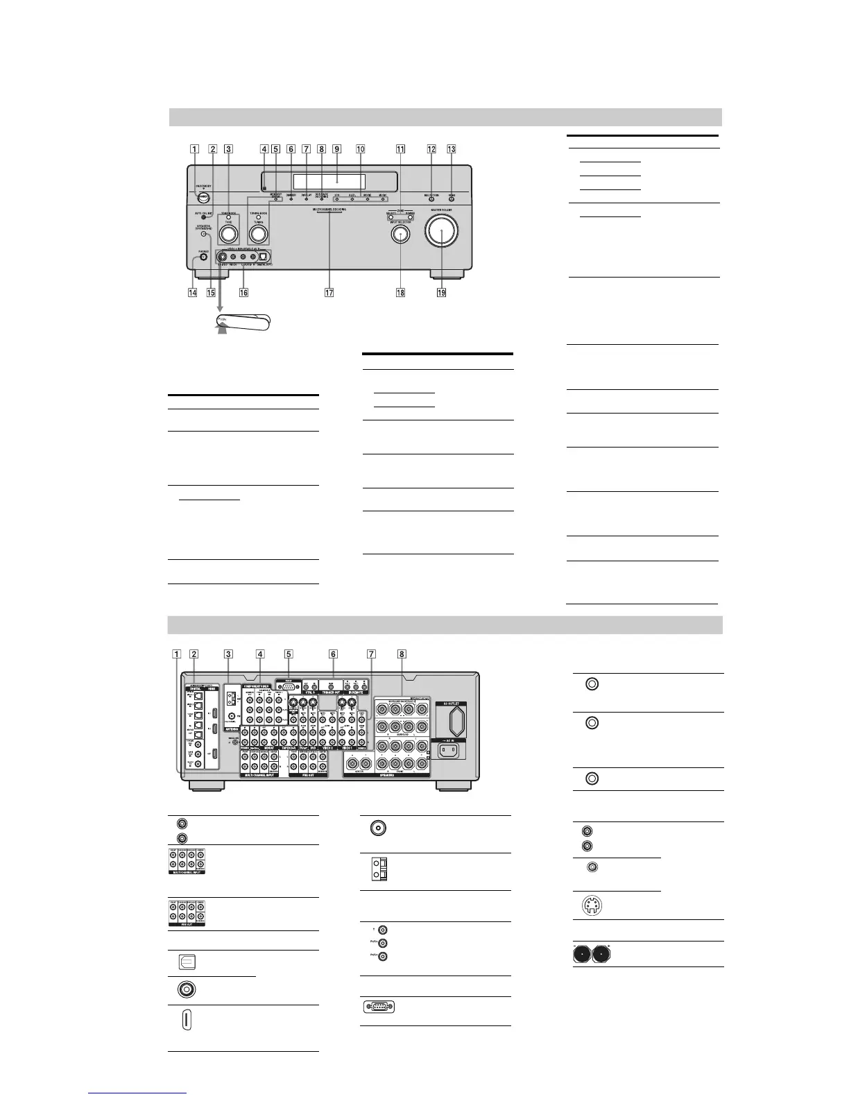 PRE OUT jacks Connects to an