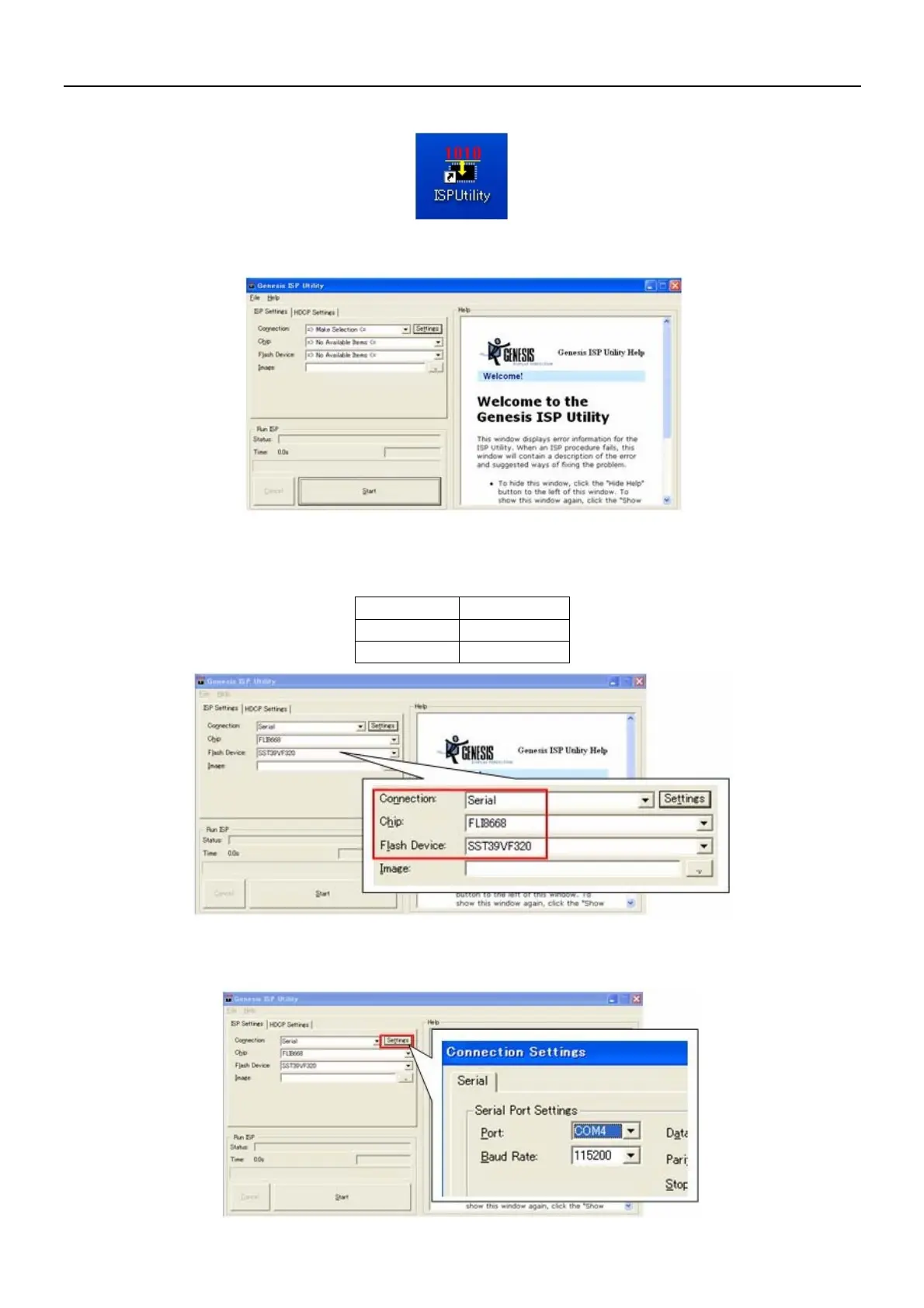 3-4-1. When the Flash Writer is displayed, click to set the ISP settings as follows.