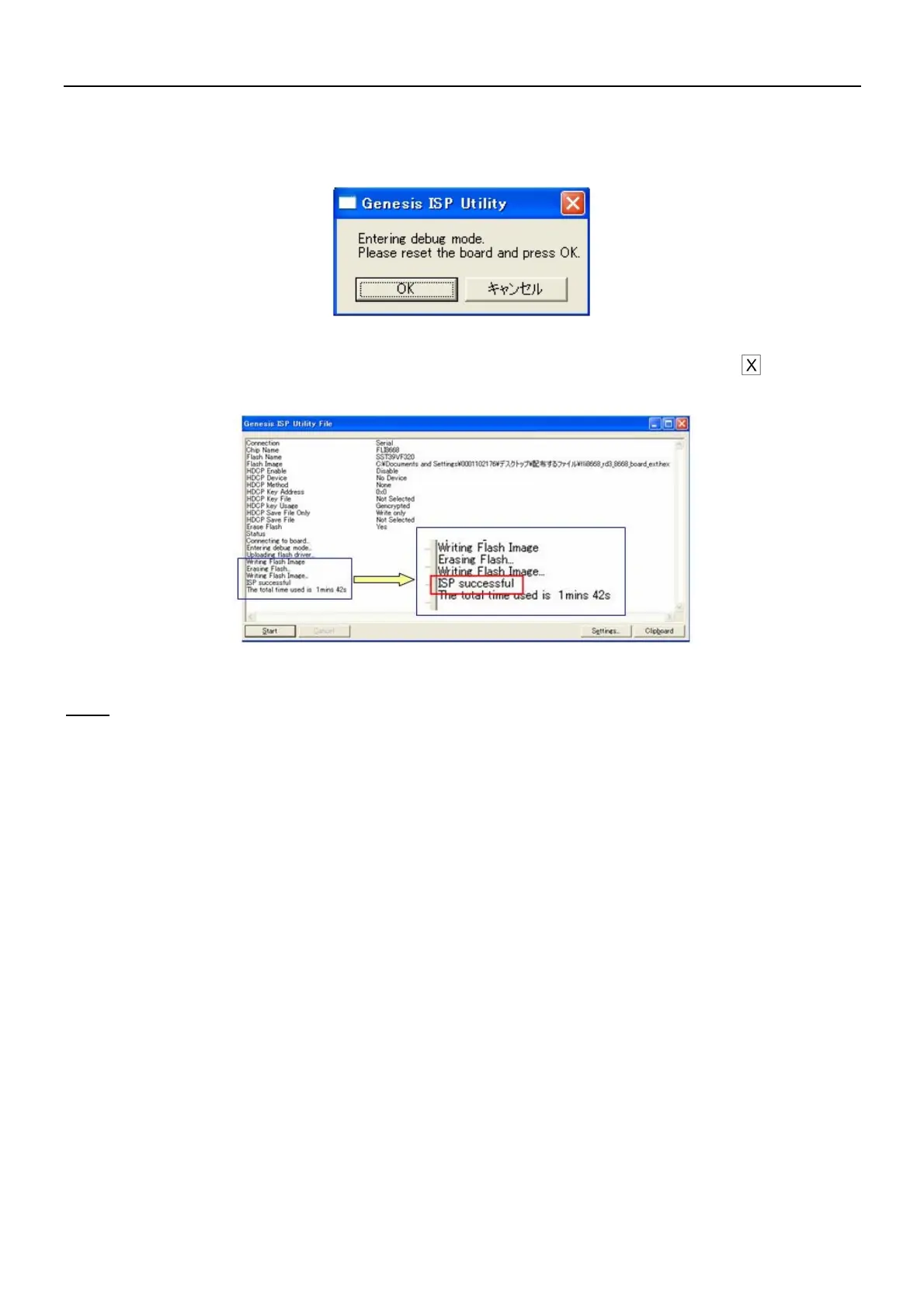 The message “ISP successful” will be displayed when the writing is completed normally. Click the [